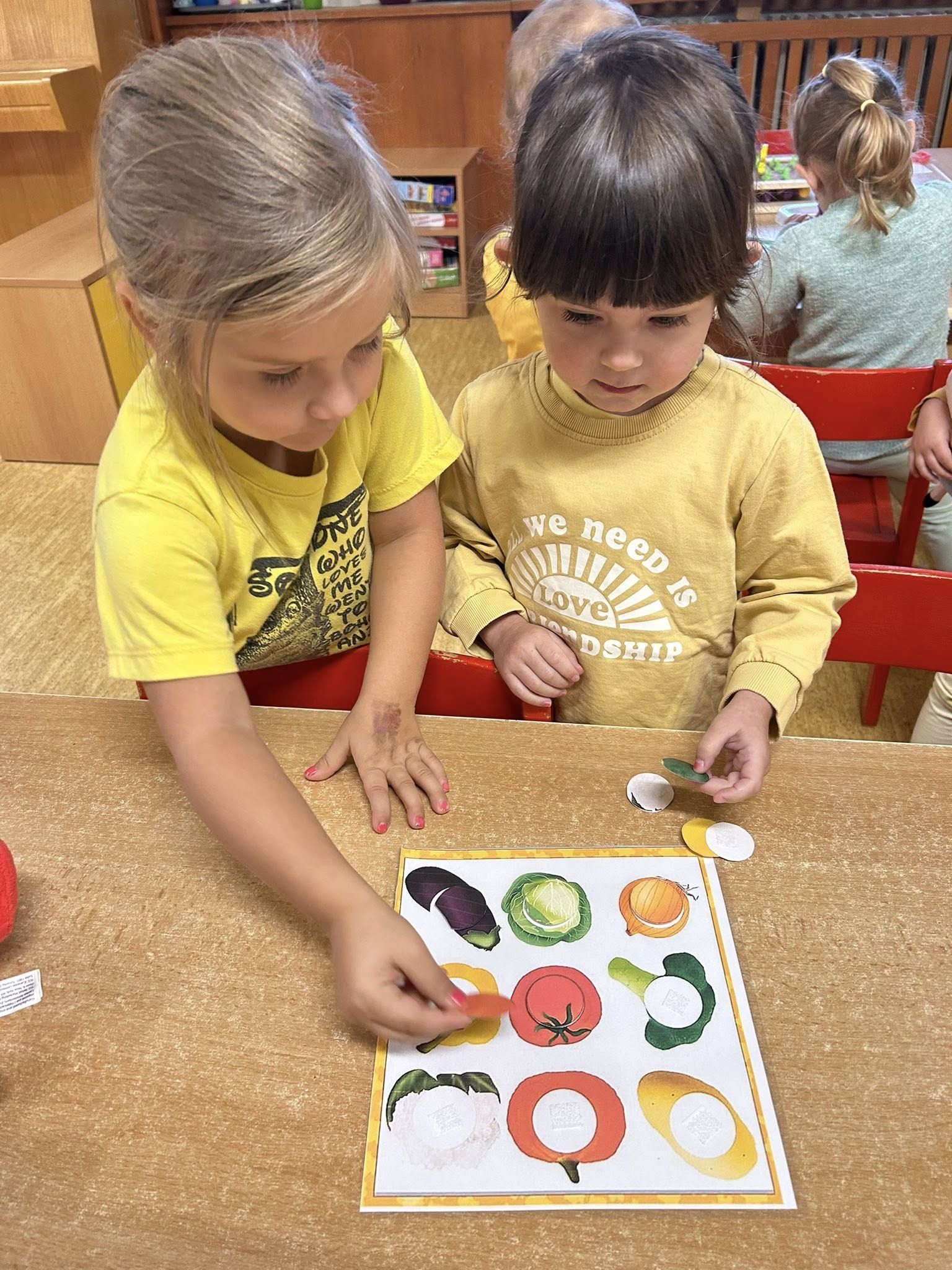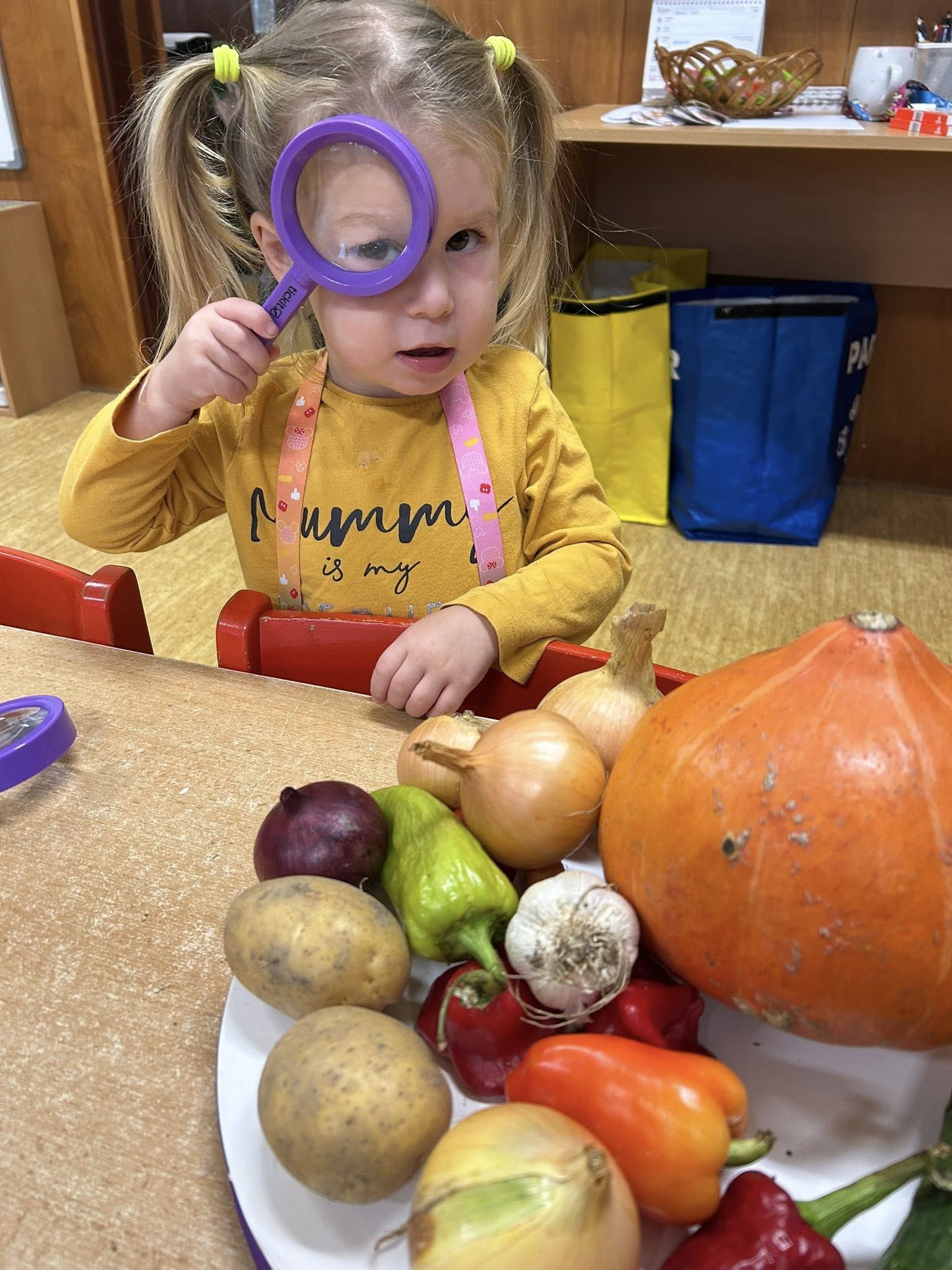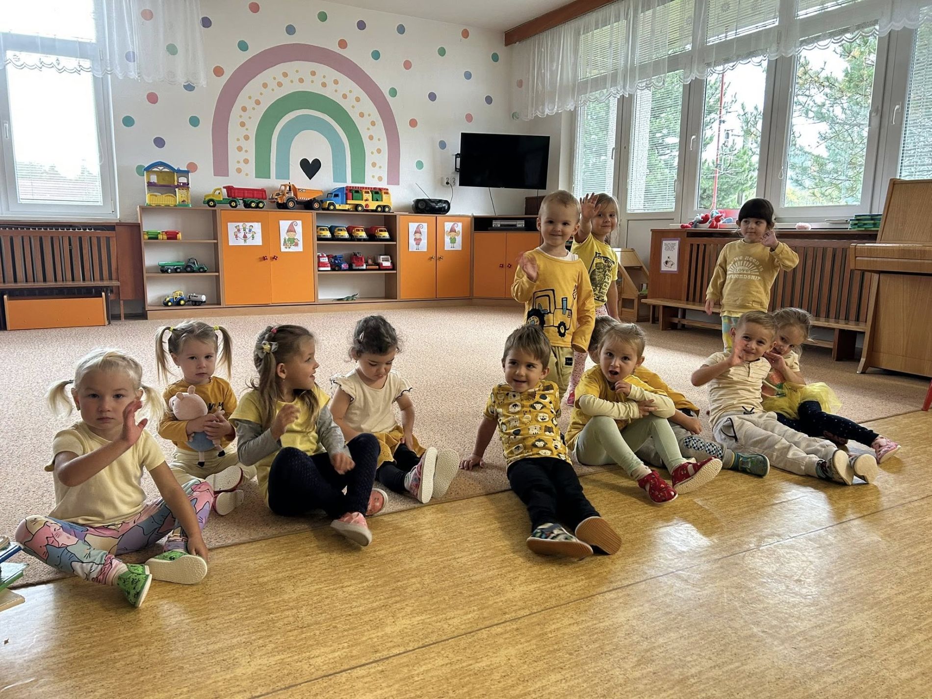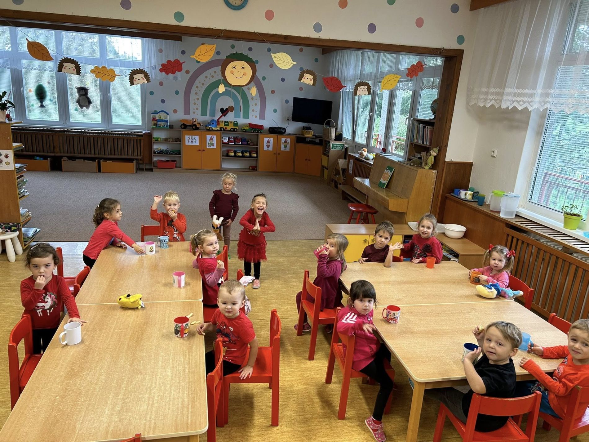 Střípky z barevného týdne u malošků. Každý den jsme si užili v jiné barvě – hráli jsme si, tvořili, zpívali a poznávali zeleninu, která roste na zahradě. Děkujeme, že děti každý den chodily sladěné do dané barvy.