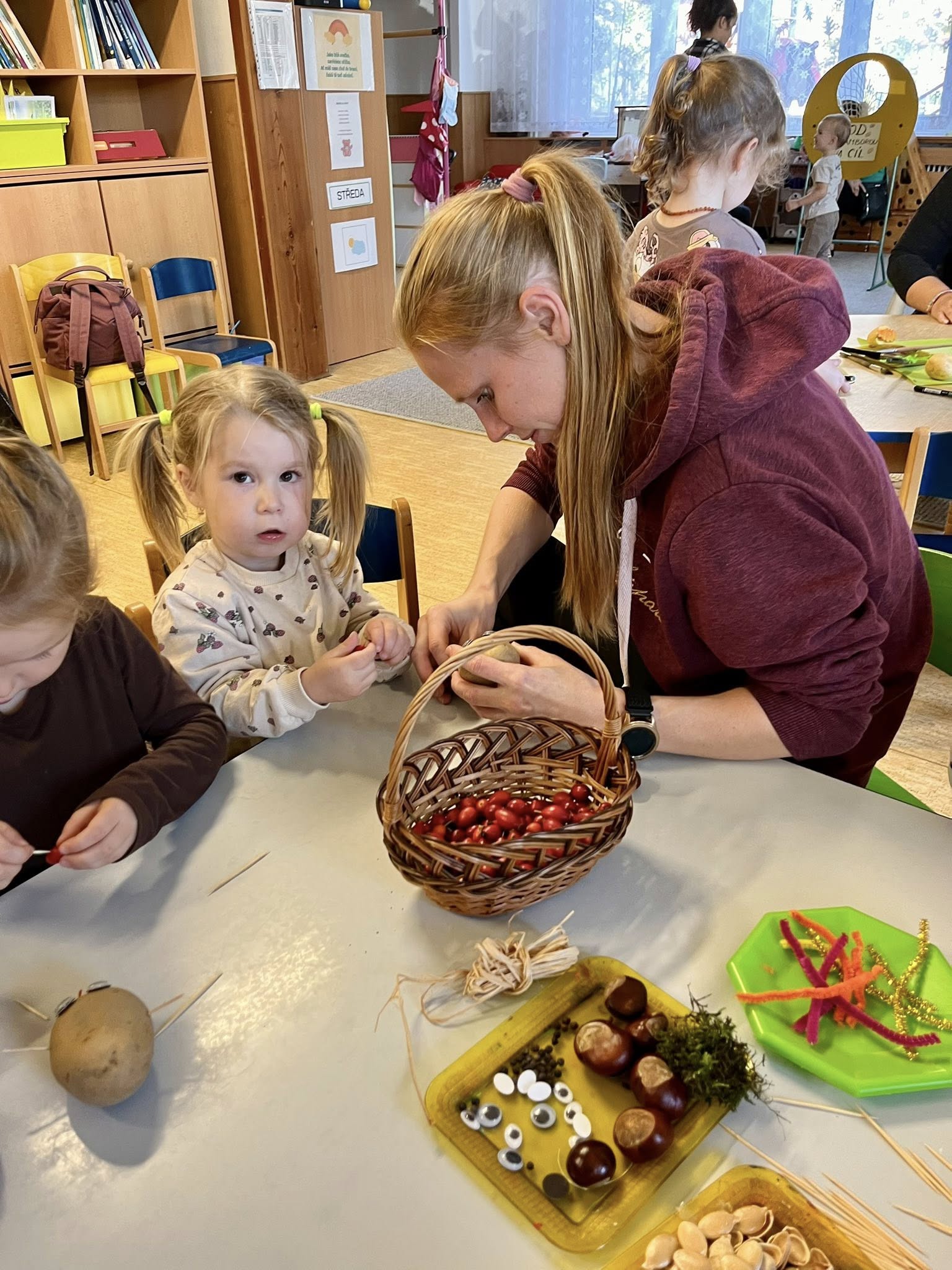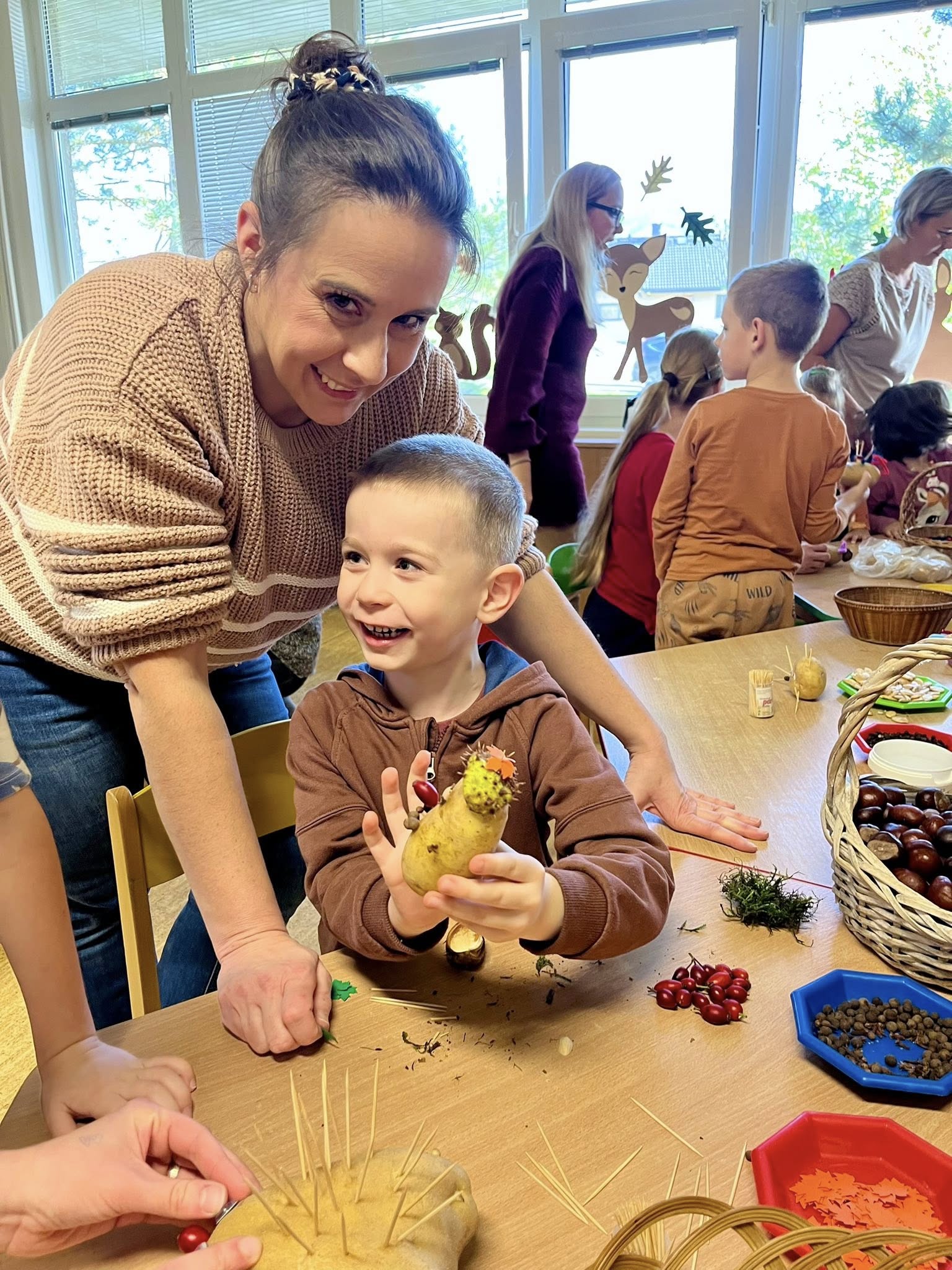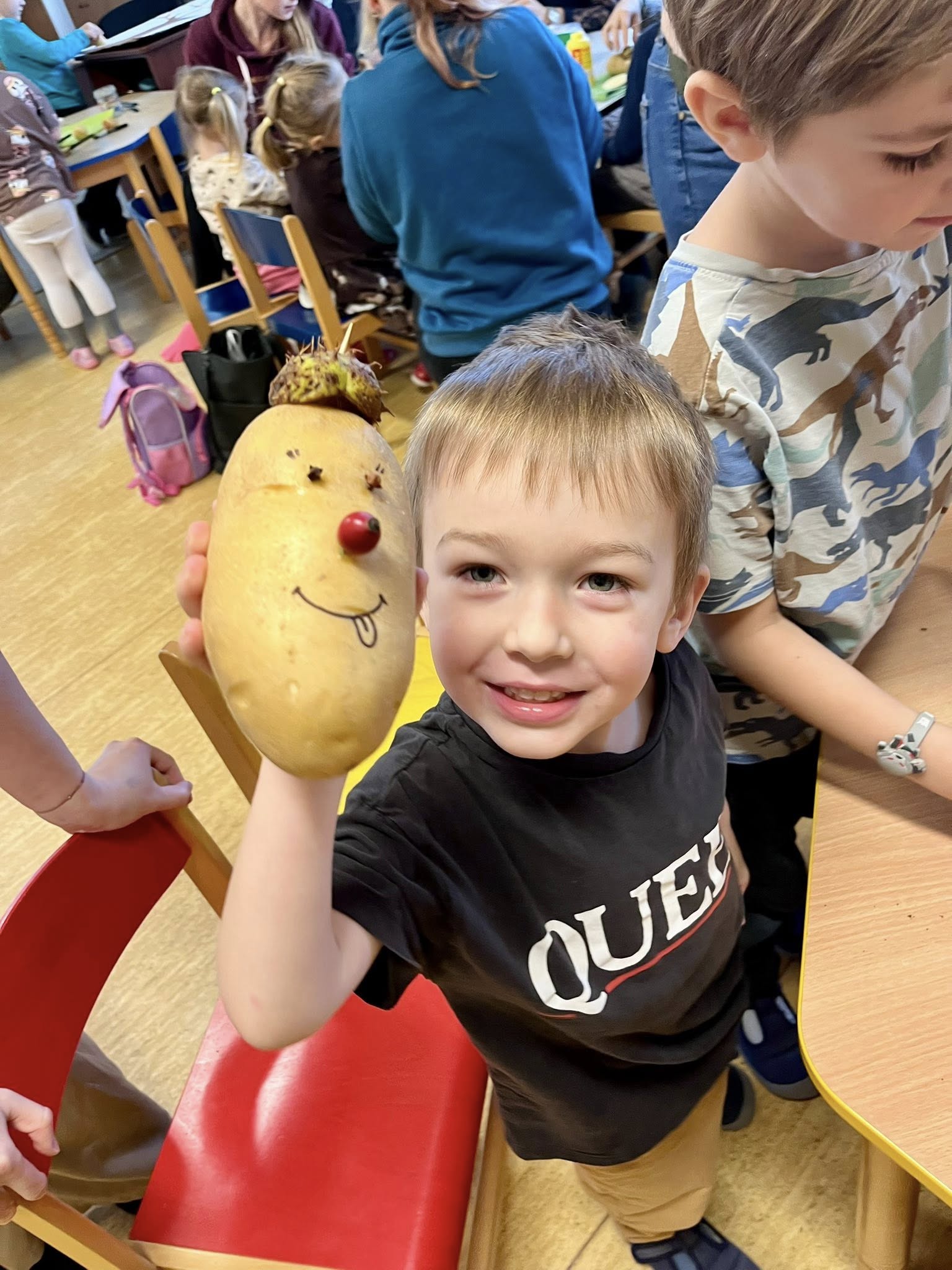 Dnešní krásná akce s rodiči Bramboriáda. Moc děkujeme všem rodičům za dobrůtky, ale především za pohodovou atmosféru, kterou s dětmi do školky přinesli.