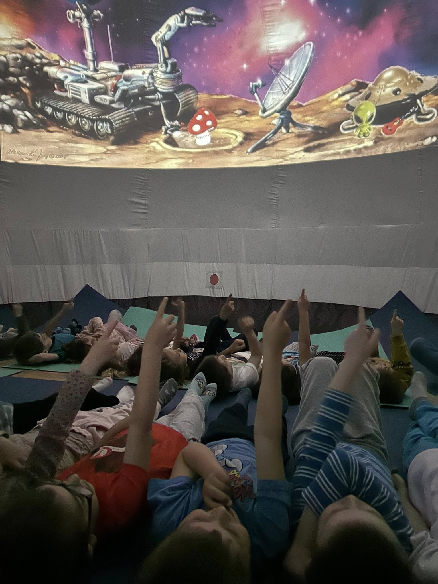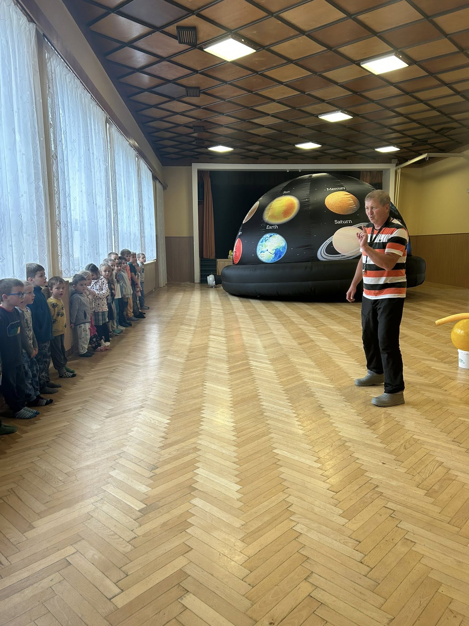 V pátek jsme si užili Den dětí v kulturním domě, kde na nás čekal Kosmický zážitkový stan. Uvnitř stanu se nám líbilo. Viděli jsme krátkou pohádku o vesmíru a když jsme vyšli ven, tak jsme si zahráli několik kosmických her.