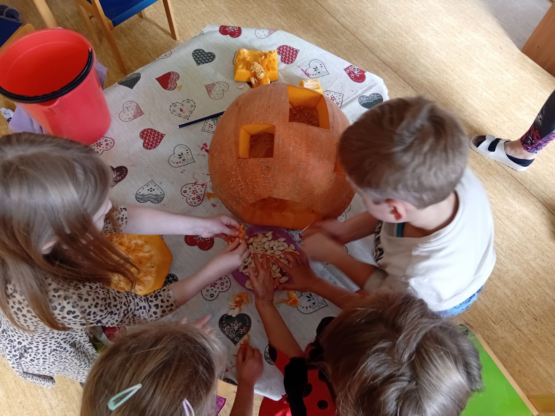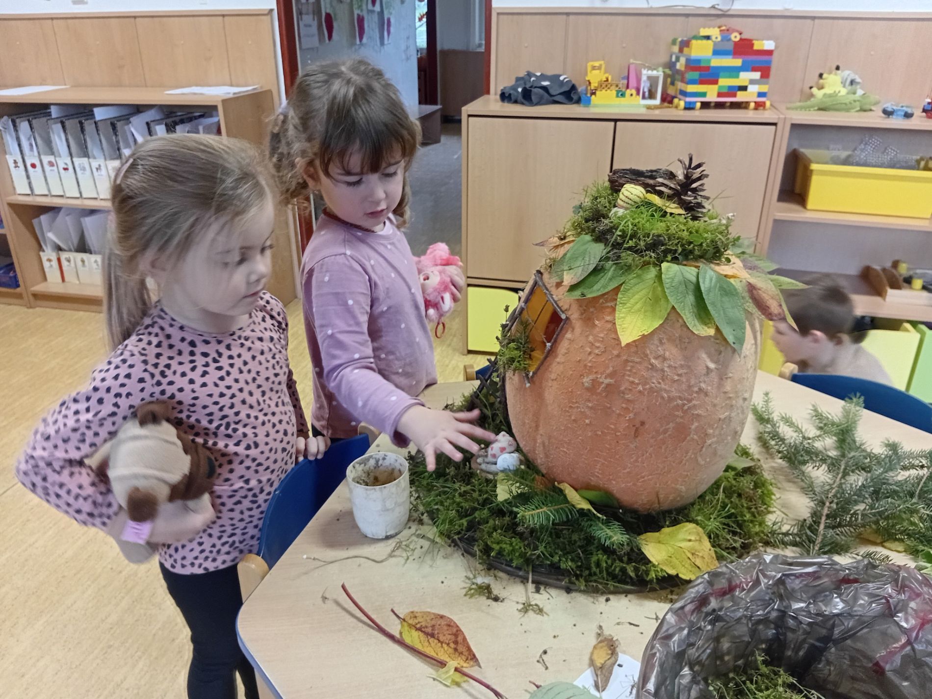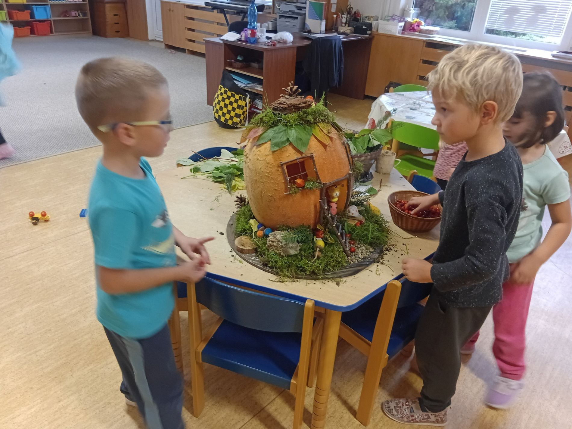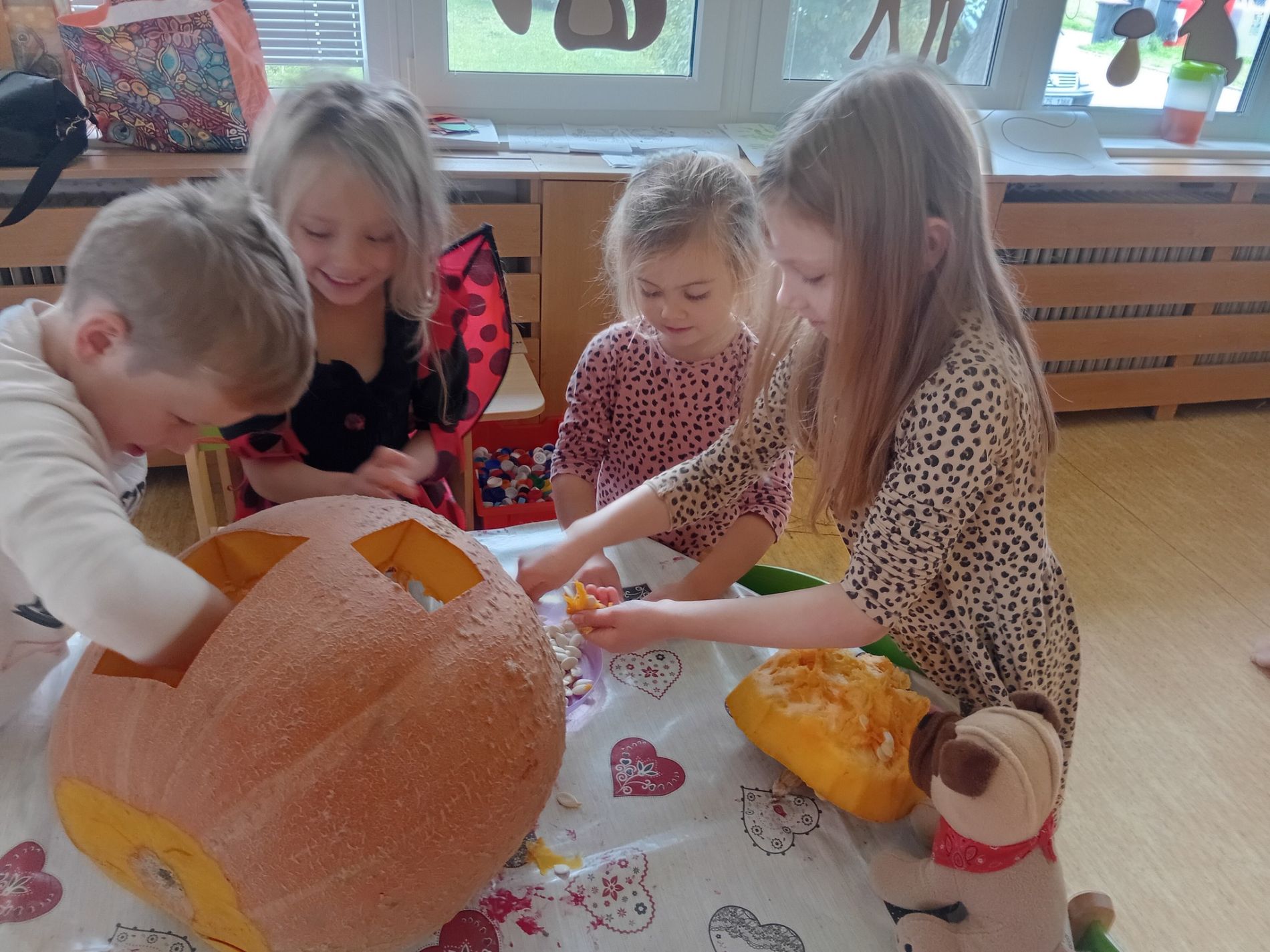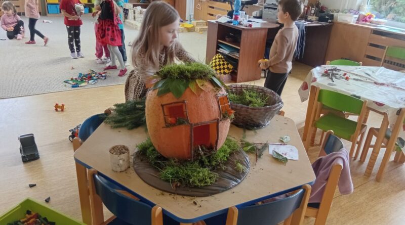Skřítek už má svůj domeček aneb, jak jsme s velkými dětmi dlabali dýni.