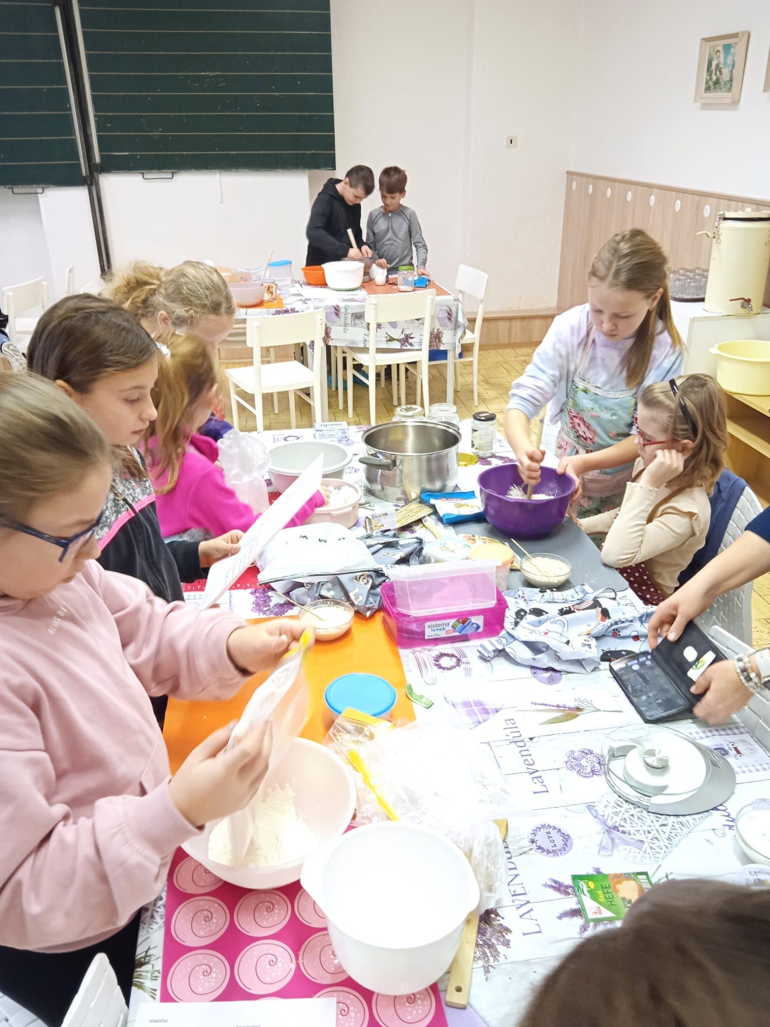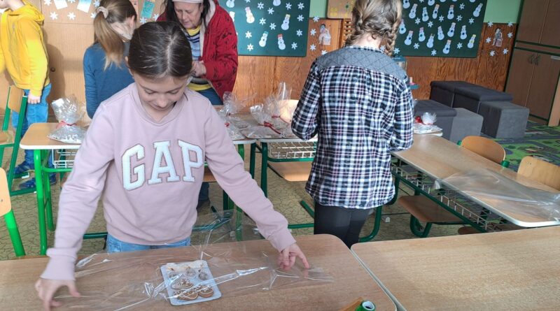 Hned poté jsme začali s přípravami na adventní akce. Vyráběli jsme výrobky na jarmark (pekli jsme sušenky a vánoční cukroví, vyráběli věnce, malovali obrázky na vánoční blahopřání, nacvičovali písničky).