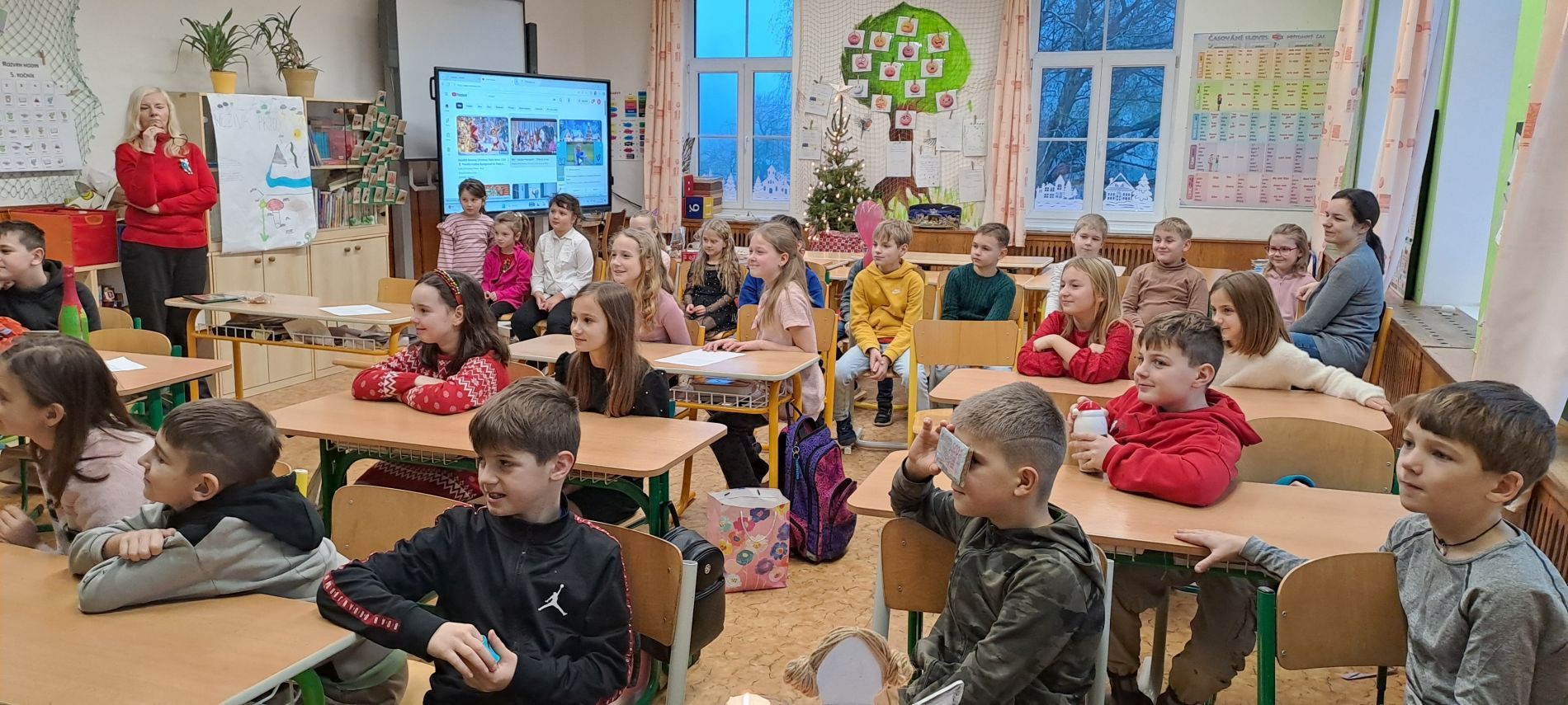 V posledním předvánočním týdnu jsme pekli tradiční vánočky. Proběhlo školní kolo recitační soutěže. V každé třídě měly děti bohatou nadílku pod vánočním stromečkem. Bohatého „Ježíška“ měla i naše družina.