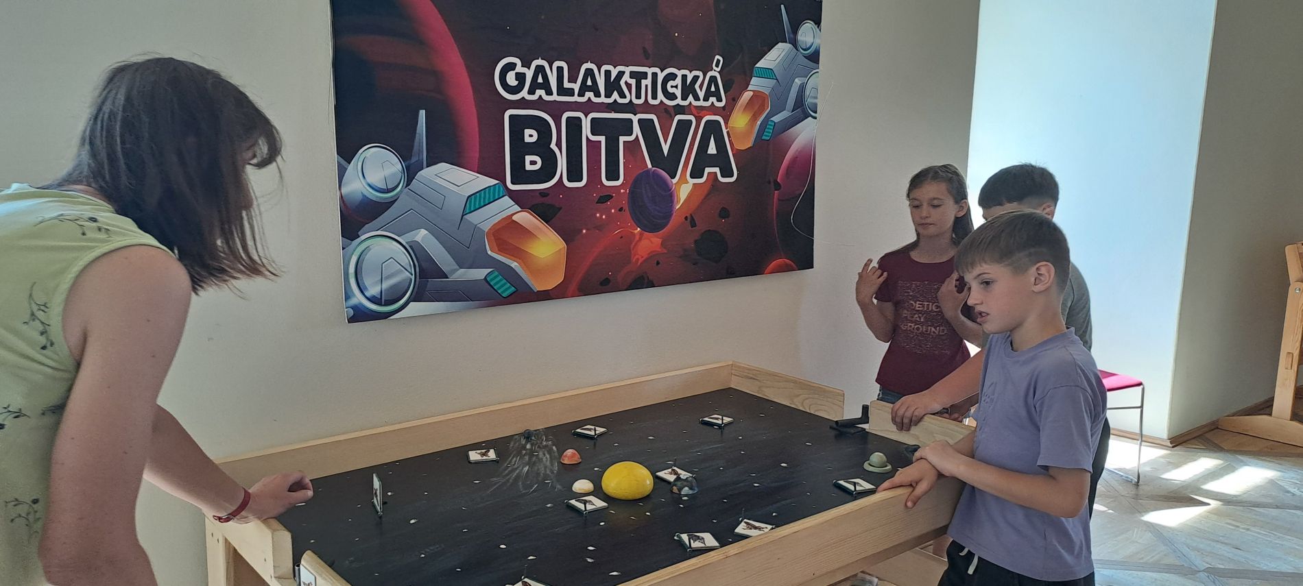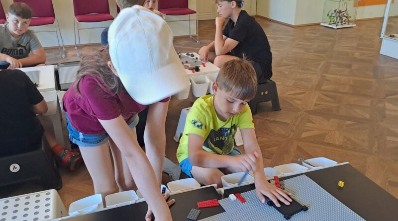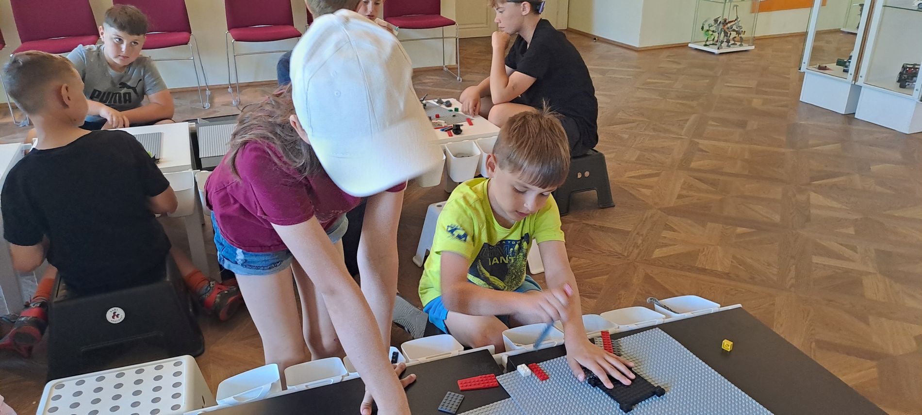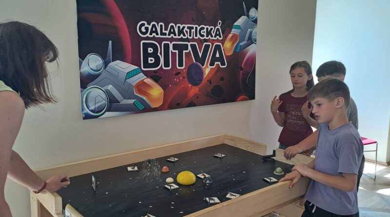 Výstavy jsme si prošli podle zájmu – někdo chtěl skládat z kostek, jiný se ponořil do vesmírných hlubin (let raketoplánem, hledání souhvězdí na nebi, galaktické bitvy, meteorické roje nebo fáze měsíce). Zvědaví badatelé to stihli všechno. - v pátek 20. 6. se žáci rozdělili na dvě skupiny. 1. a 2. ročník se vydal prozkoumávat přírodu v okolí hřiště v Osíčku a tam si důkladně protáhli tělo.