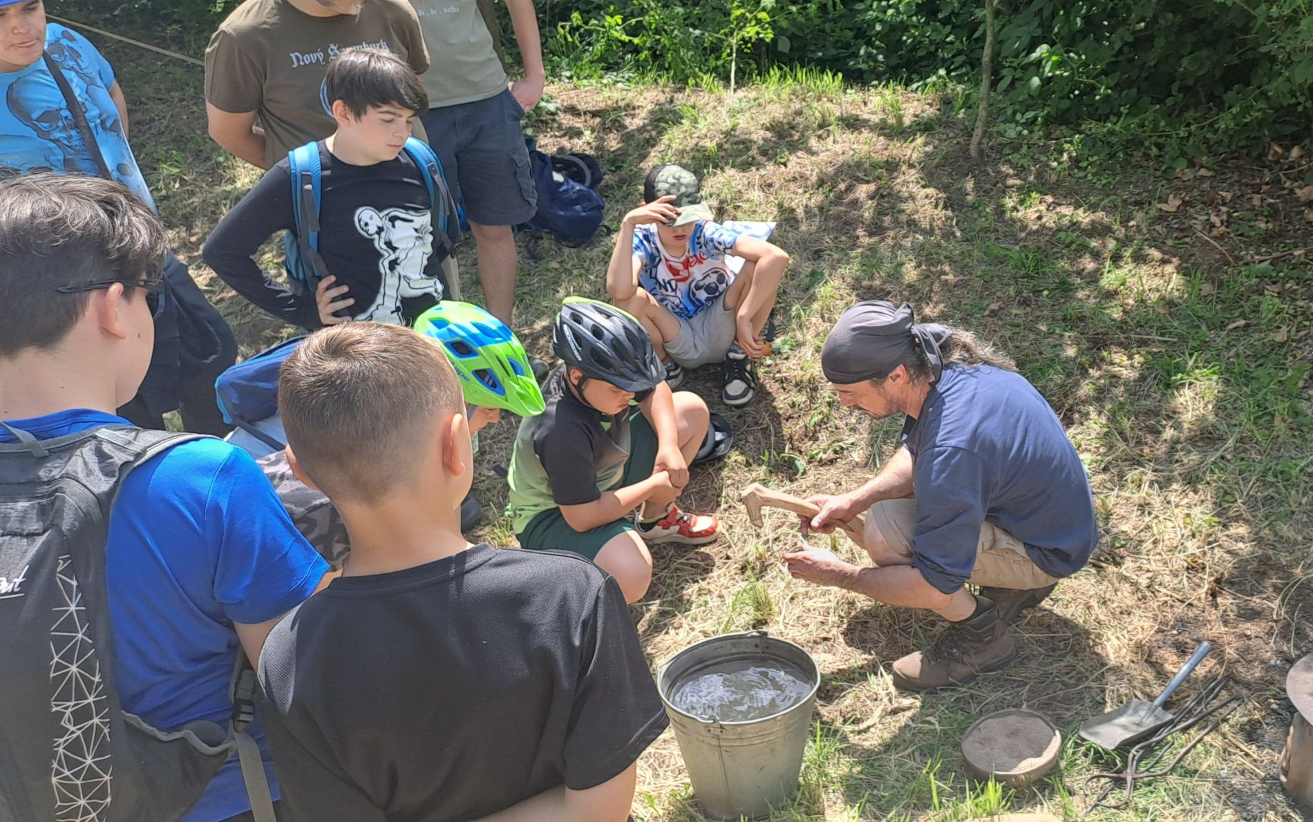 Žáci 3., 4., a 5. ročníku spojili sportovní aktivitu s badatelskou. Jeli jsme na cyklovýlet na zříceninu hradu Šaumburk. Tam pro nás místní skupina dobrovolníků pod vedením pana Tomáše Třetiny ve spolupráci s MAS Bystřice p. Host. připravila ukázku odlévání a zpracování bronzu ve středověku.