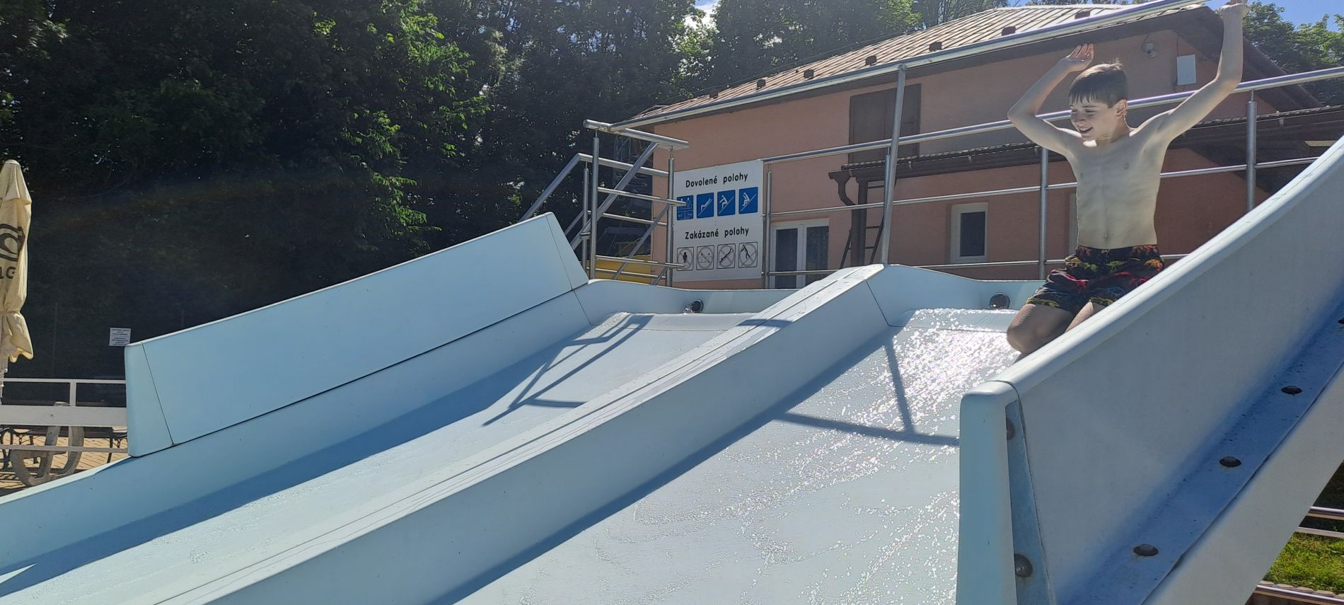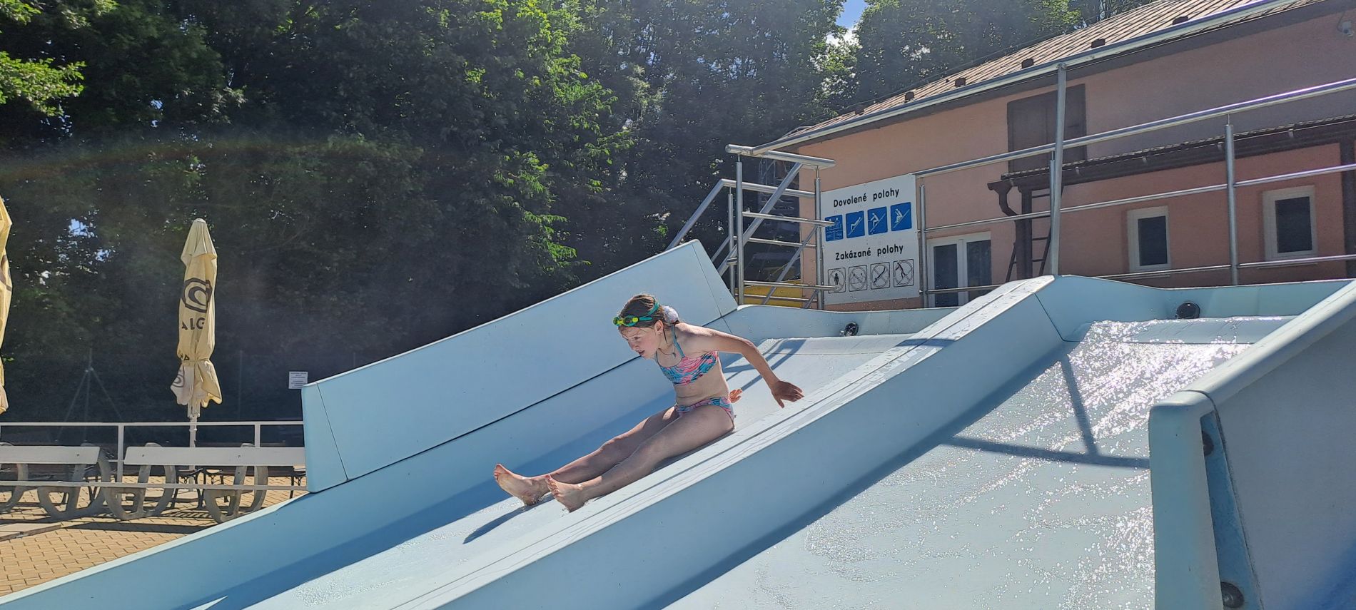 Plavali jsme v prázdném bazénu, byl jen pro nás, tobogán bez fronty.