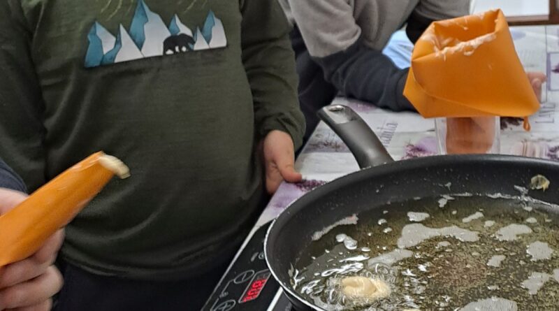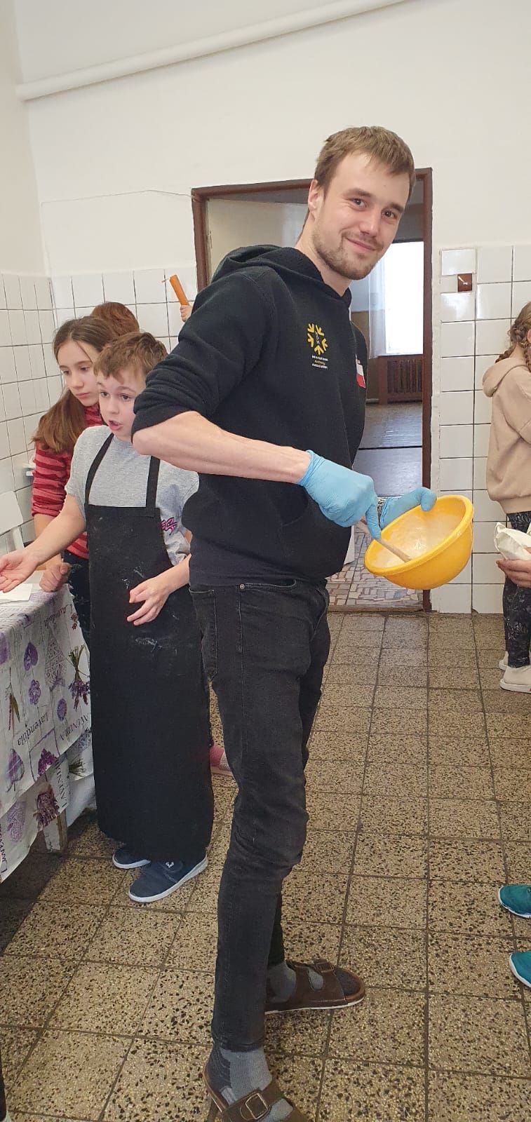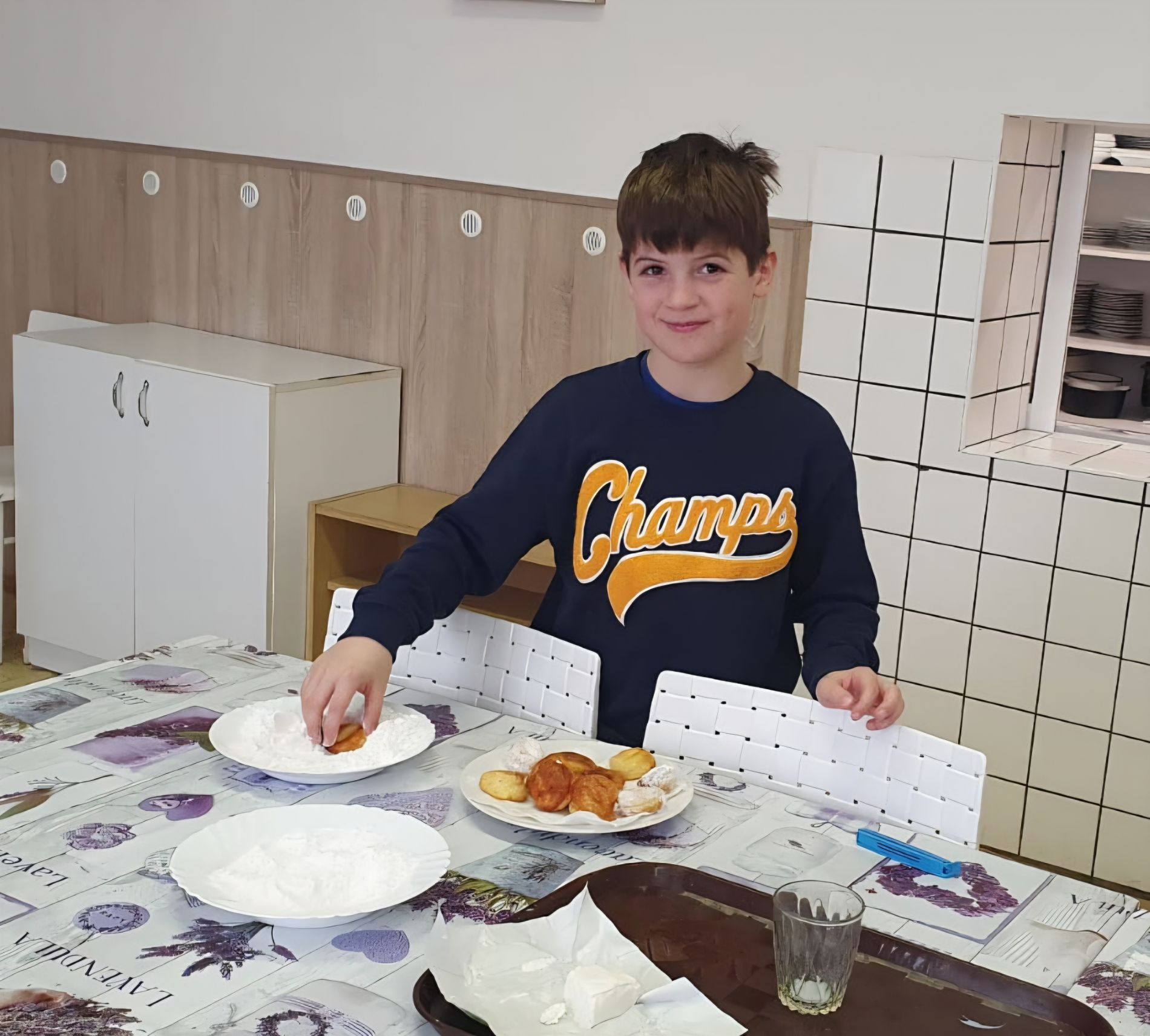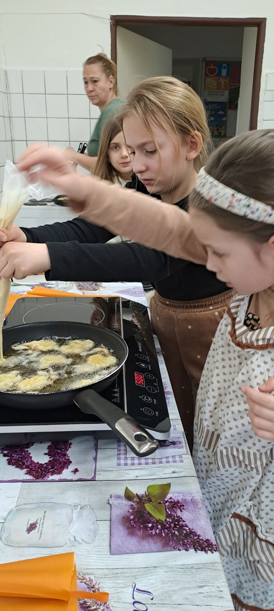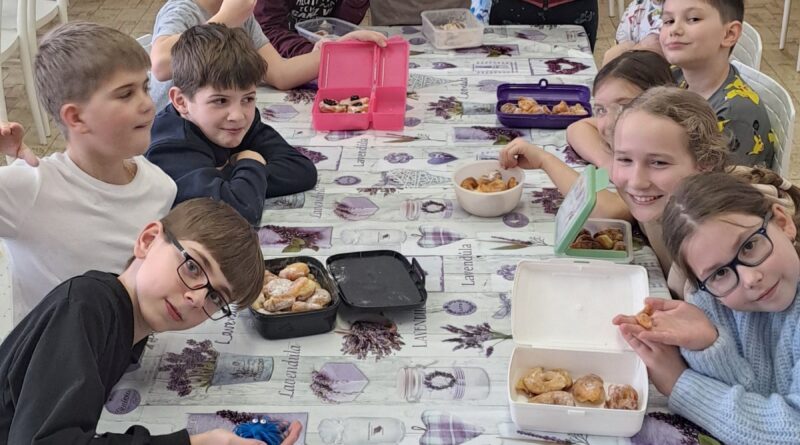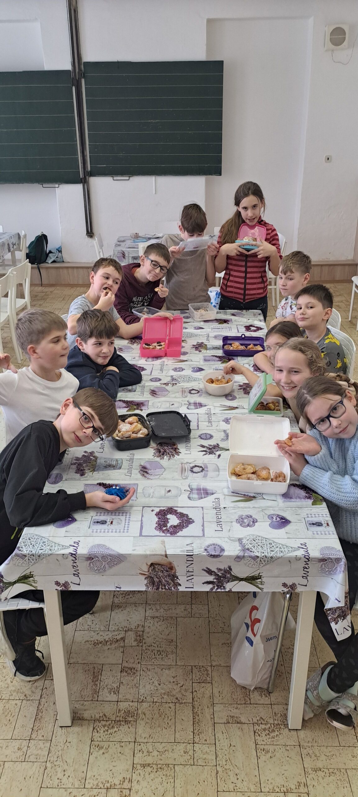 Masopust si připomínáme nejen tradičním smažením koblížků. Letos jsme se rozdělili do dvou skupin. Nejdříve své kuchařské dovednosti trénovali žáci 1., 2. a 3. ročníku. Pracovali ve dvojicích – starší a mladší, aby ti zkušenější spolužáci provázeli ty mladší. O skupinkách rozhodl los. Dvojičky si četly recept, vážily mouku a množství tvarohu. Společně pak jednotlivé suroviny smíchaly do hladkého těsta a smažily. Na všechny činnosti (zvlášť na smažení) dohlíželi paní učitelky Renata Pospíšilová, Barbora Hrušková, paní asistentka Jana Štůralová a pan asistent Daniel Cindler. Žáci 4. a 5. ročníku pracovali samostatně. Jsou větší a mají více zkušeností. Podle receptu si zkušení kuchtíci připravili těsto a pak opatrně smažili. Usmažené bochánky obalovali ve směsi moučkového a vanilkového cukru. Malí kuchaři si poradili se všemi nástrahami při vaření, ale nejtěžší úkol na ně teprve čekal – úklid. Naštěstí jsme měli úžasné pomocníky – paní Bobkovou, která pomohla s hromadami nádobí, paní asistentka Štůralová kontrolovala utřené stoly a židle. Pan asistent Cindler fotil nezapomenutelné momenty našeho kuchařského snažení.