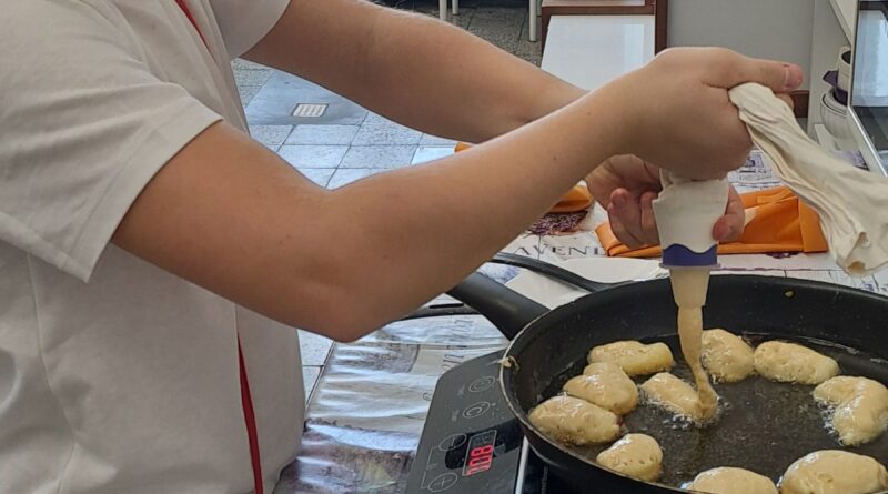 – sáčkem stříkáme do tuku malé bochánky, které po osmažení obracíme