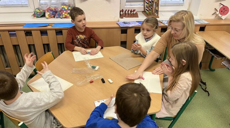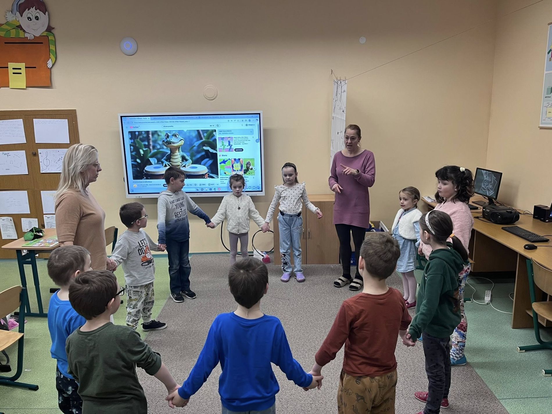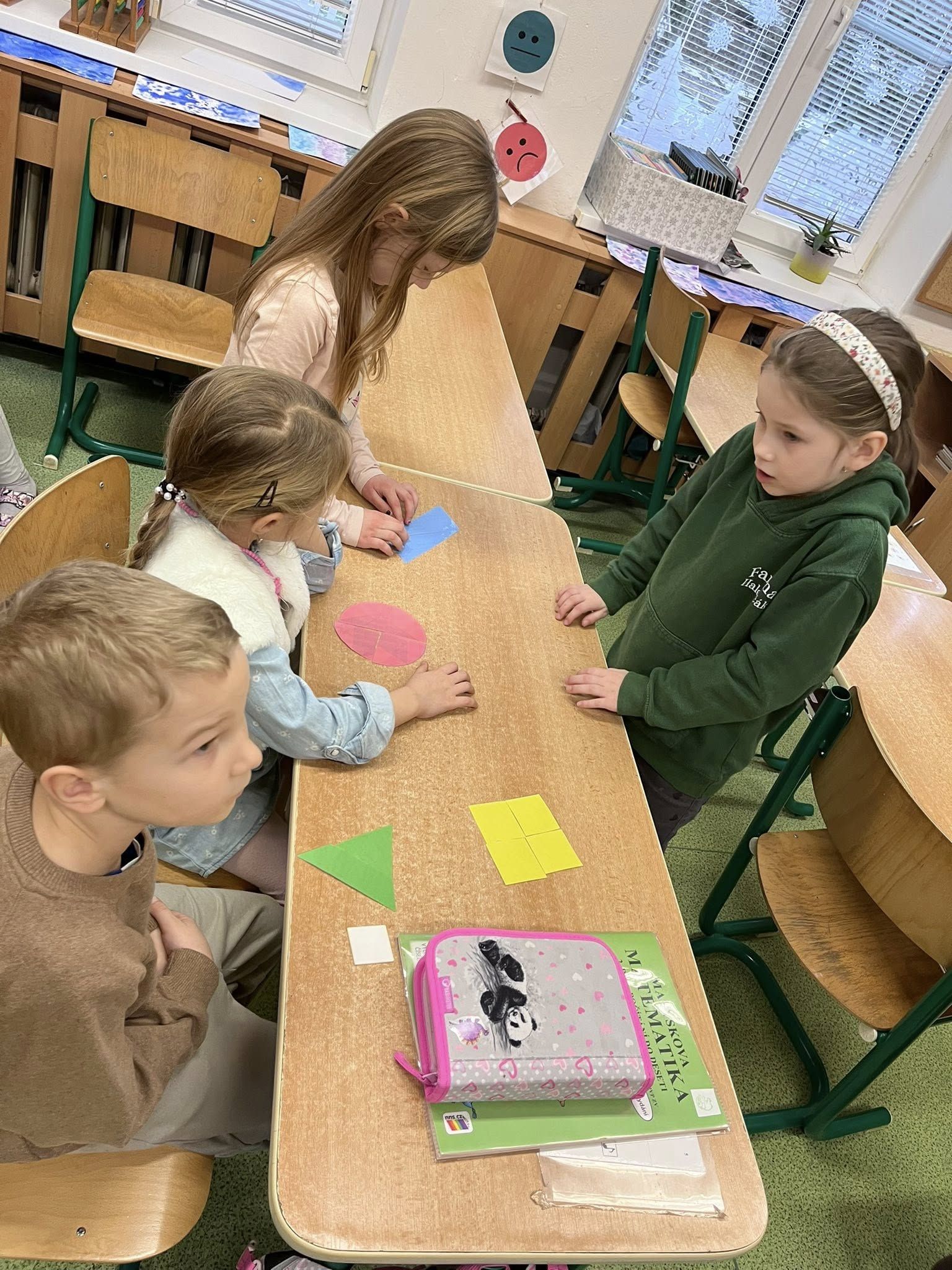 V pátek naši předškoláčci navštívili ZŠ, kde pro ně byl připraven program na téma geometrických tvarů a barev (krásnĕ jsme navázali na náš tematickẏ tẏden ve školce). Modelovali z plastelíny, pracovali na počítači s pexesem, tvořili geo. tvary vlastním tělem, zatančili si a celé dopoledne si moc užili.