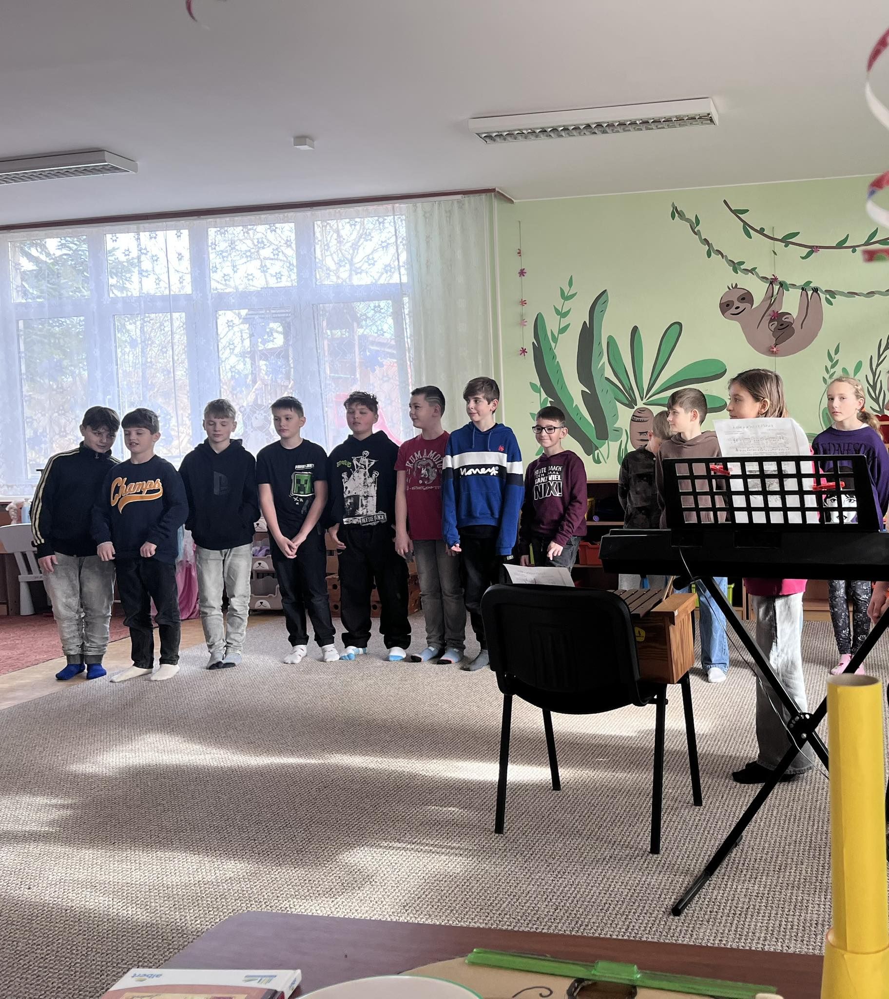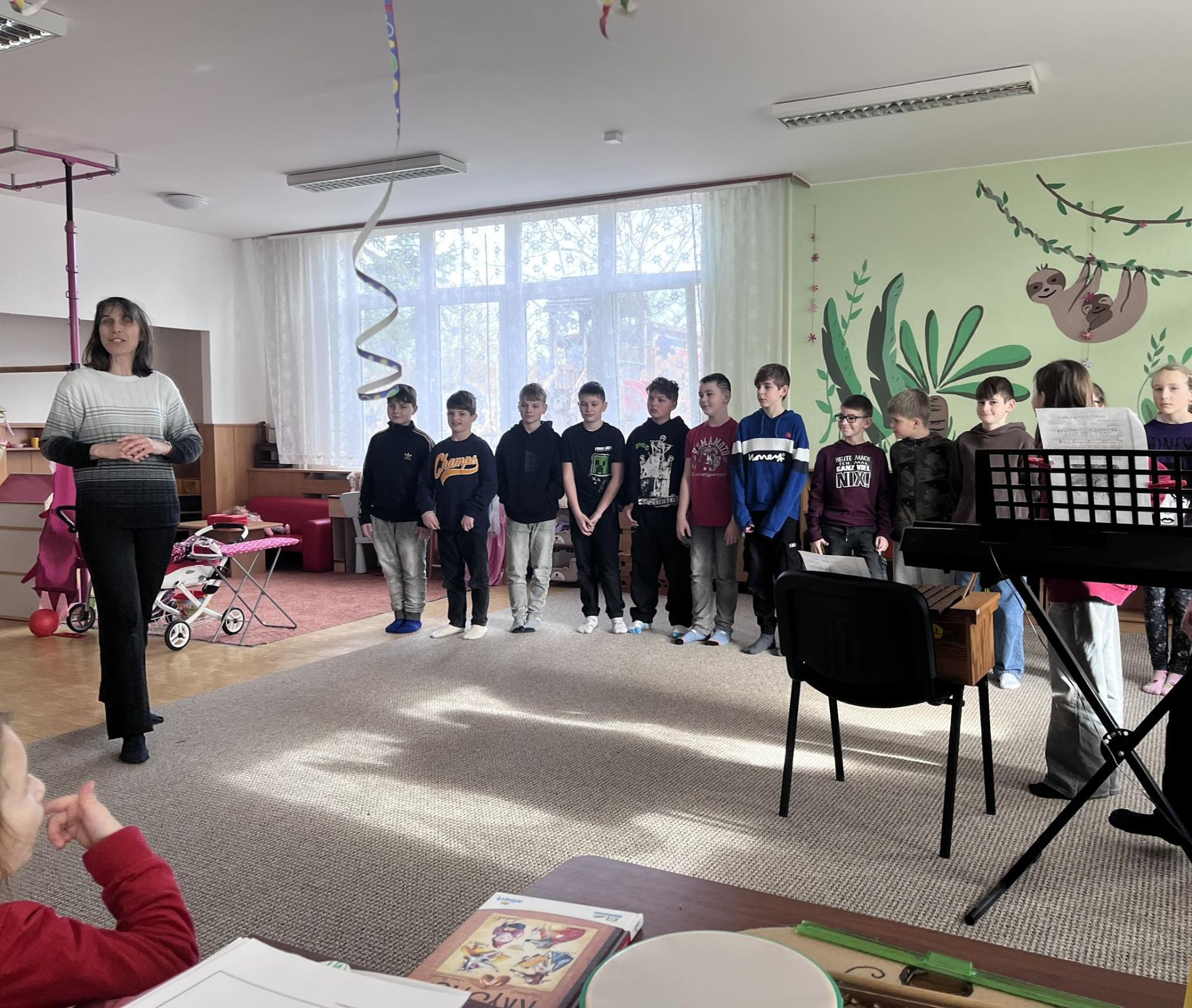 Tentokrát nepřišly děti z mateřské školy do základní školy, ale základní škola přijela za námi. Přivezla krásné hudební představení, které se nám všem moc líbilo. Děkujeme za milou návštěvu.