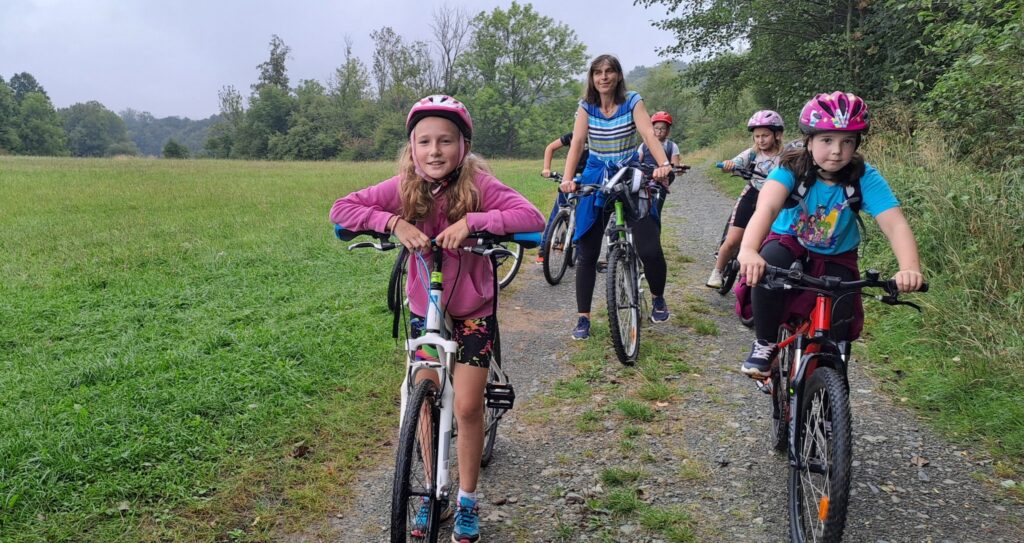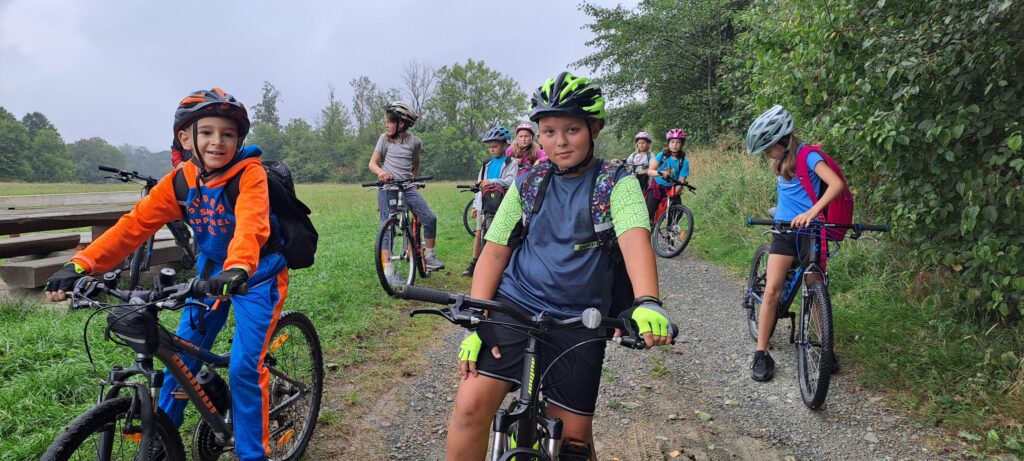 Žáci 3., 4. a 5. ročníku se vydali na cyklovýlet do Bystřice p. H. Cílem bylo bystřické náměstí a koupě nějaké dobroty za odměnu (zmrzlina, koláč, dobré pití nebo jiná sladkost). Opravdu bylo za co odměňovat. Cestu jsme naplánovali přes Kozinec. Děti se musely potýkat s různými překážkami – strmé nebo dlouhé stoupání, jízda v terénu (v lese), rychlé sjezdy, trochu deštivé počasí i drobné technické potíže. Sami sobě tak ukázaly, že umí tzv. zatnout zuby a jít za svým cílem. Vlastně to byla taková malá příprava na překonávání obtíží při získávání nových dovedností a znalostí během školního roku. Všichni to zvládli skvěle, a ještě se při tom dokázali navzájem podporovat a povzbuzovat. Trénovali spolupráci a také pomoc. Na závěr si odvážlivci projeli trať pumptracku.