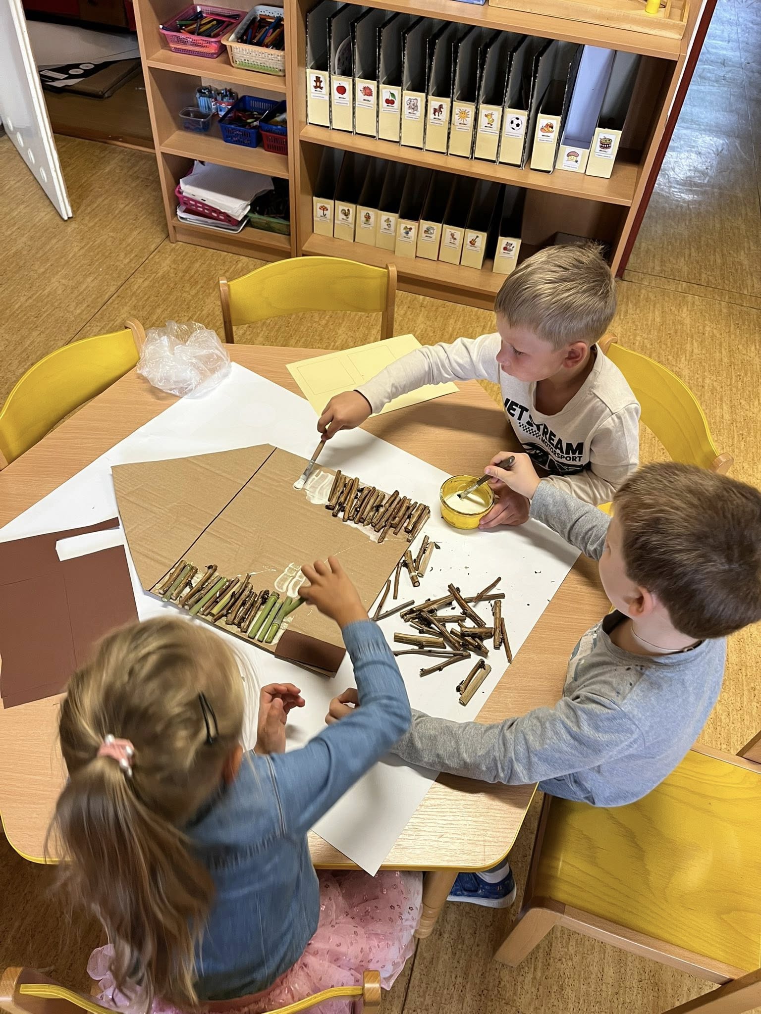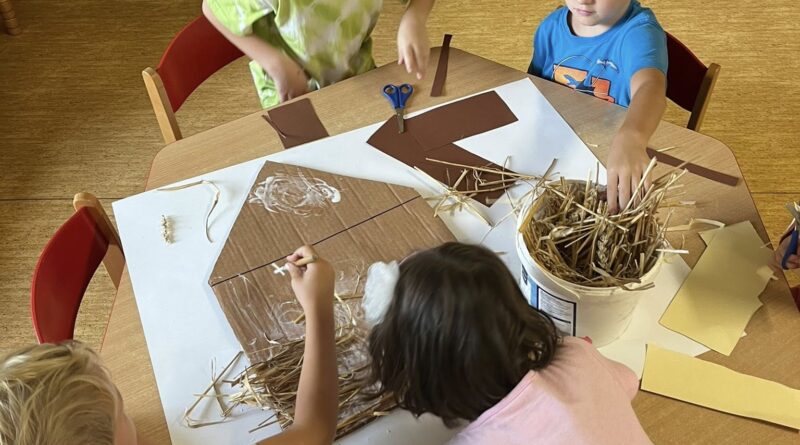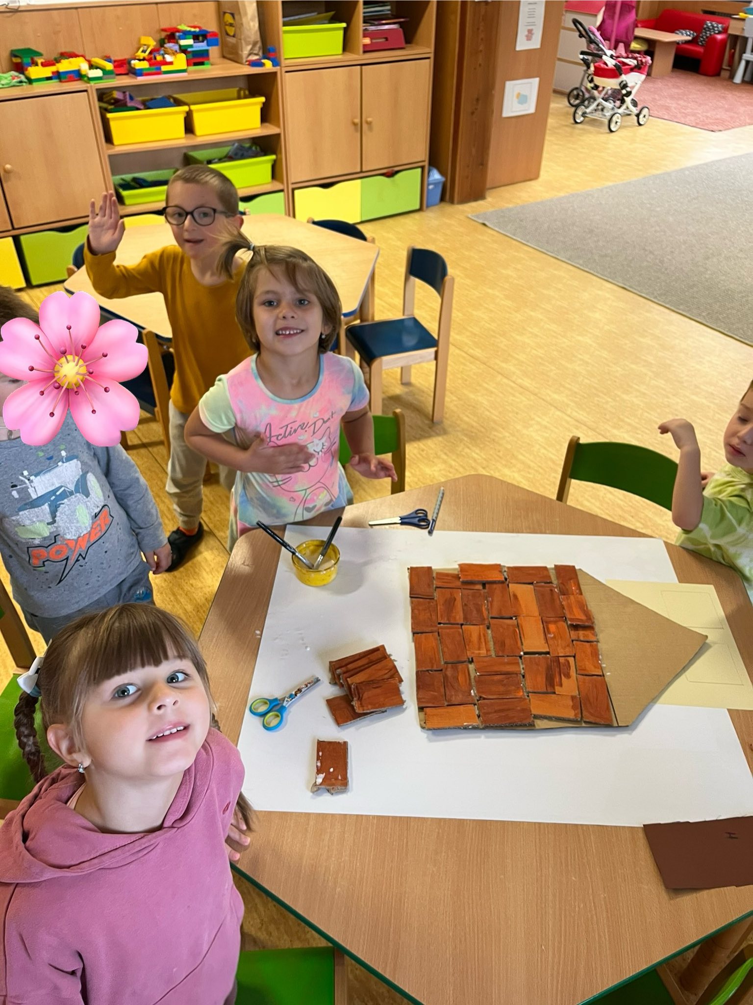 Po přečtení známé pohádky jsme se společně vrhli na výrobu domečků ze slámy, dřeva a cihel. Šlo nám to moc pěkně.