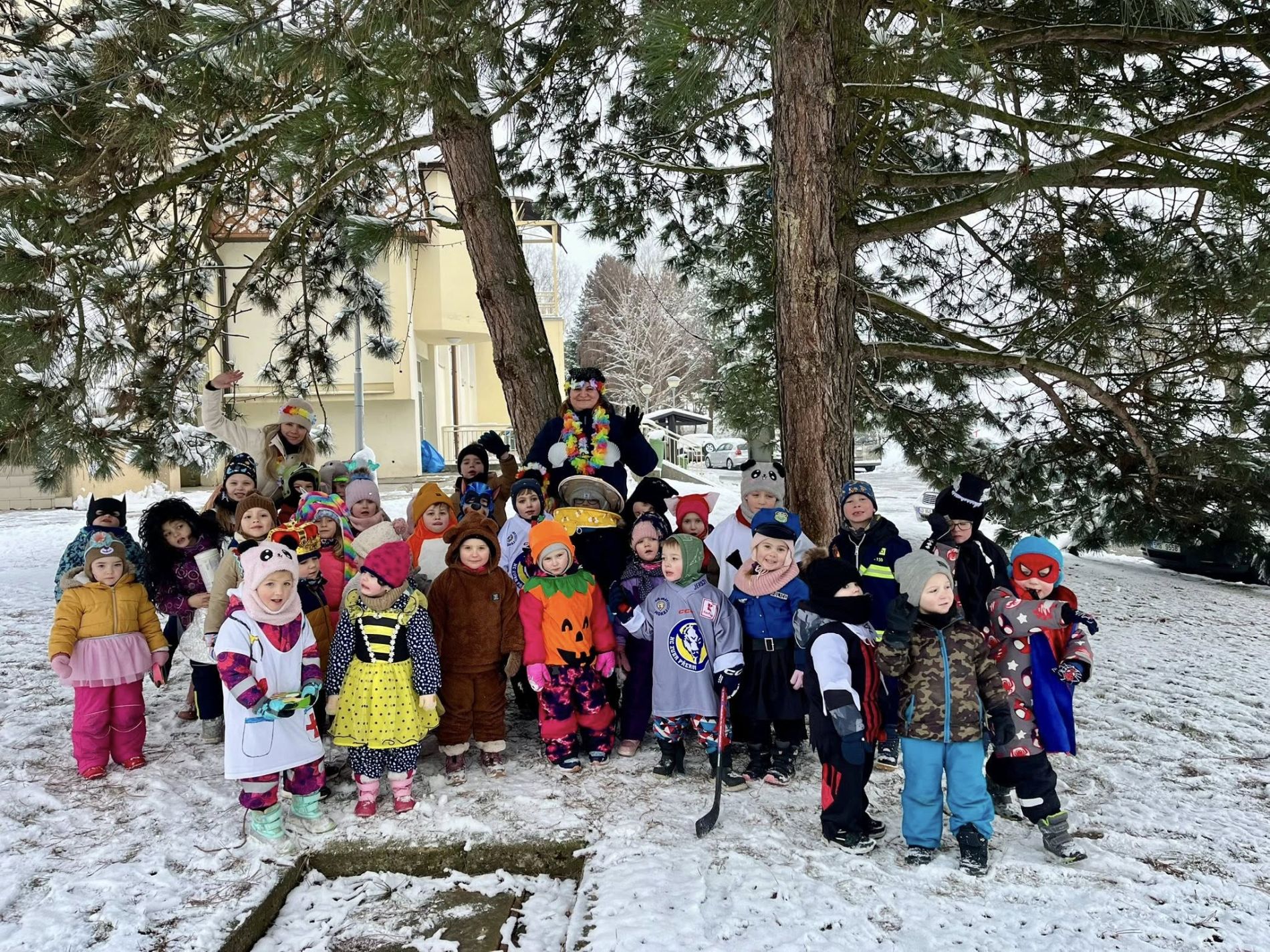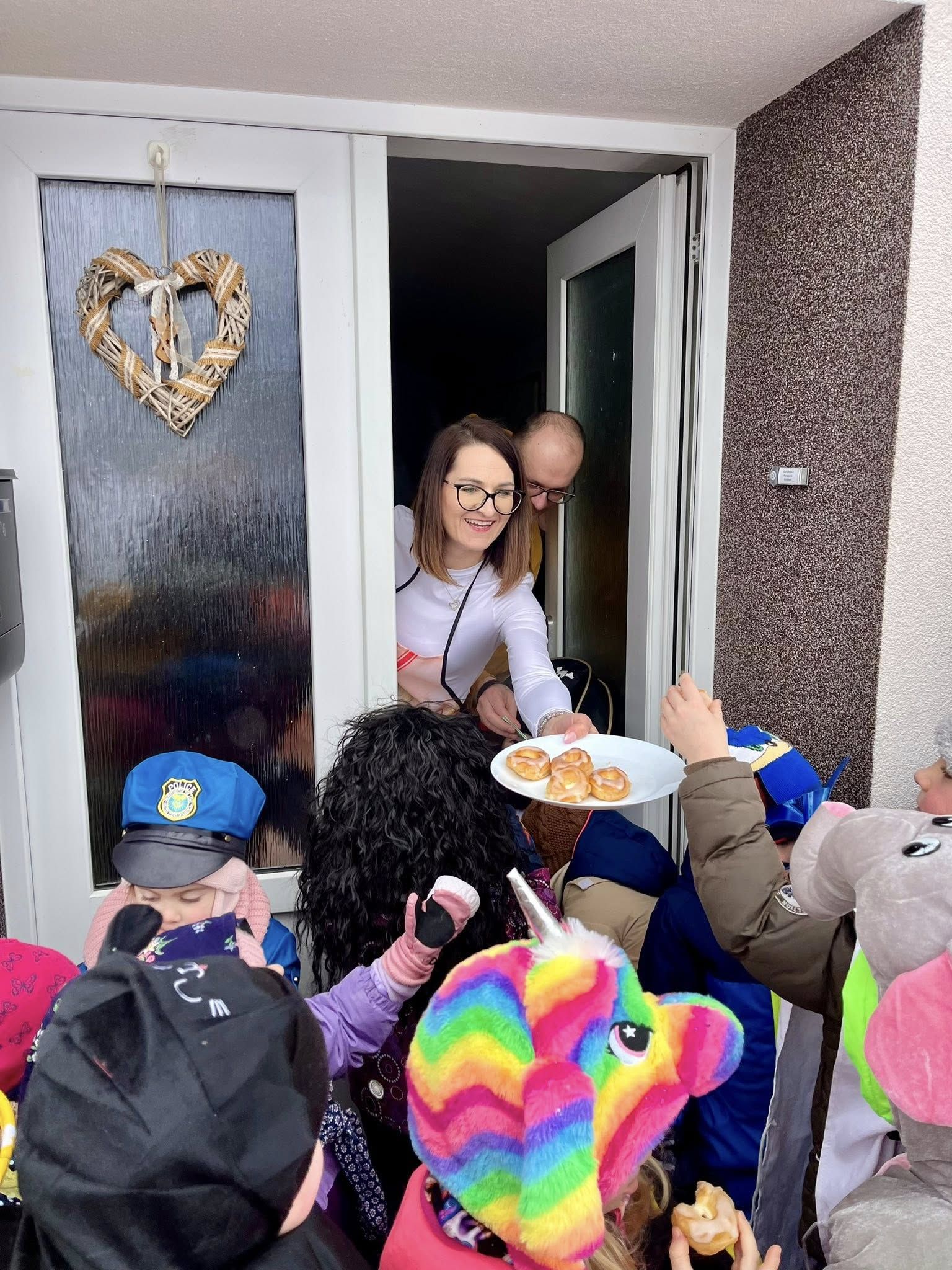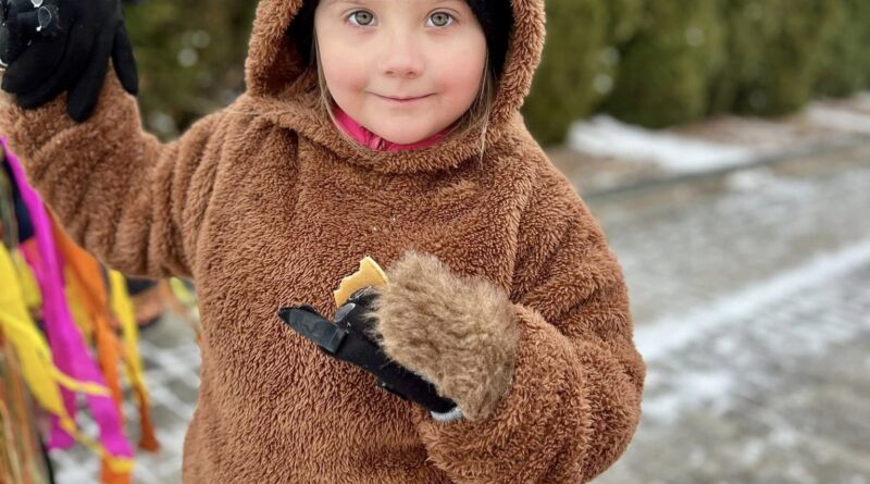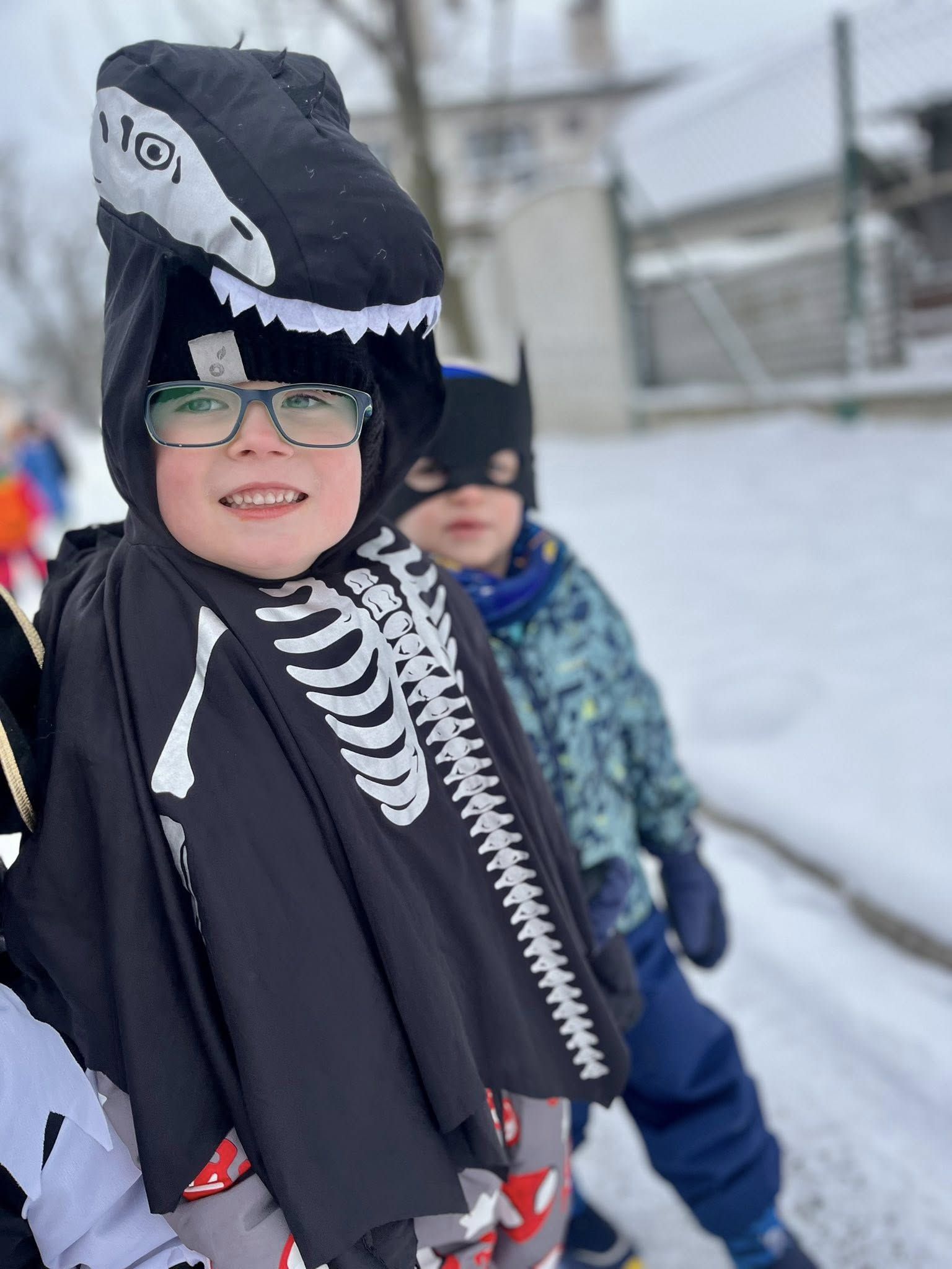 Společně jsme se také vydali na tradiční vodění medvěda po obci, kde děti zažily pravou masopustní atmosféru.