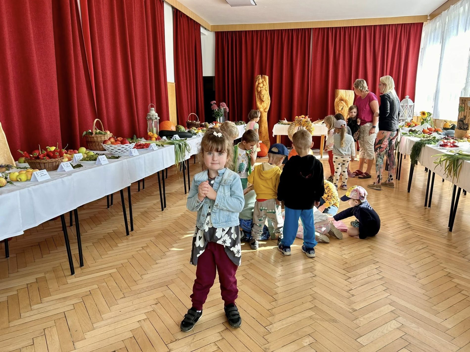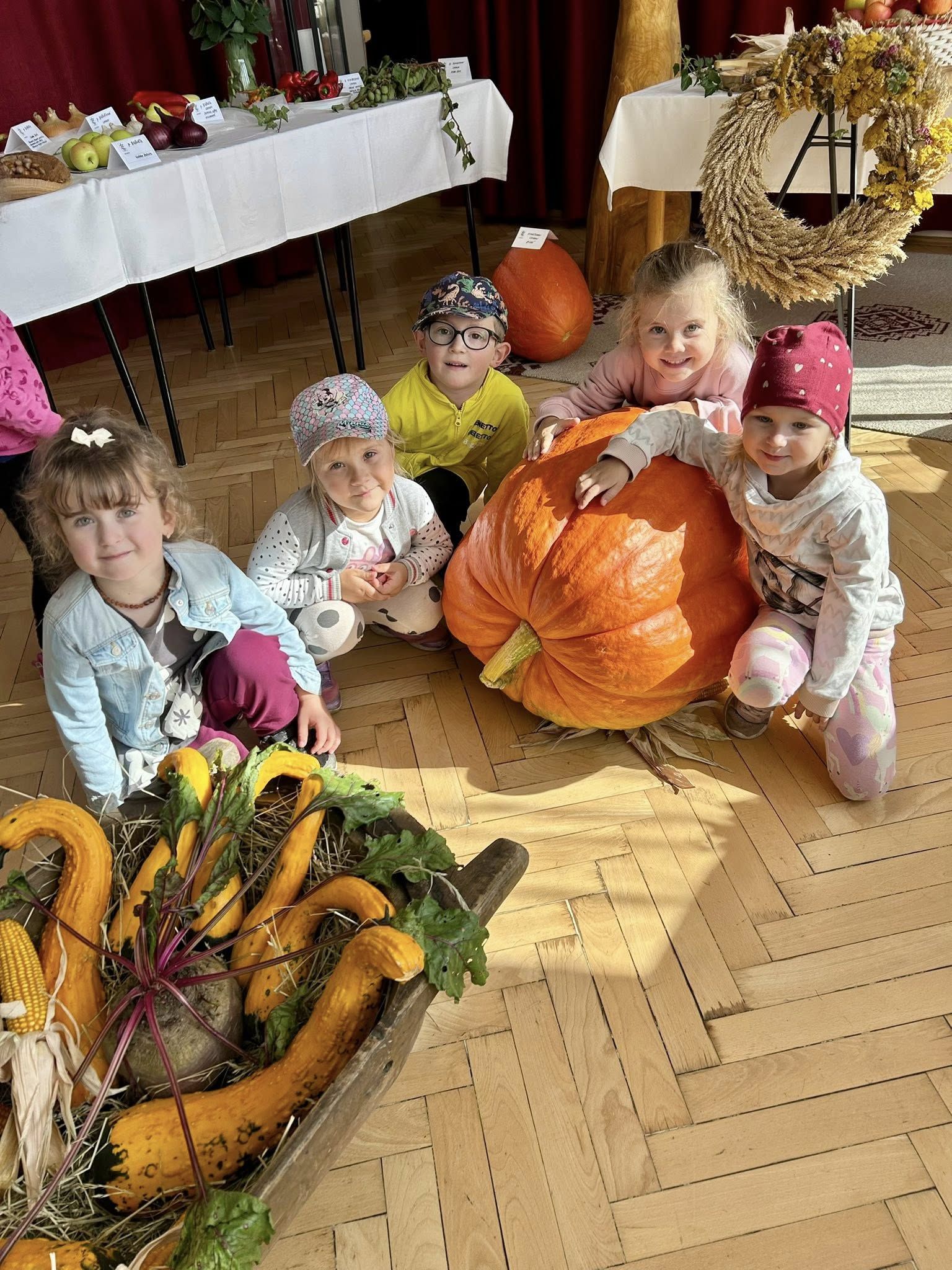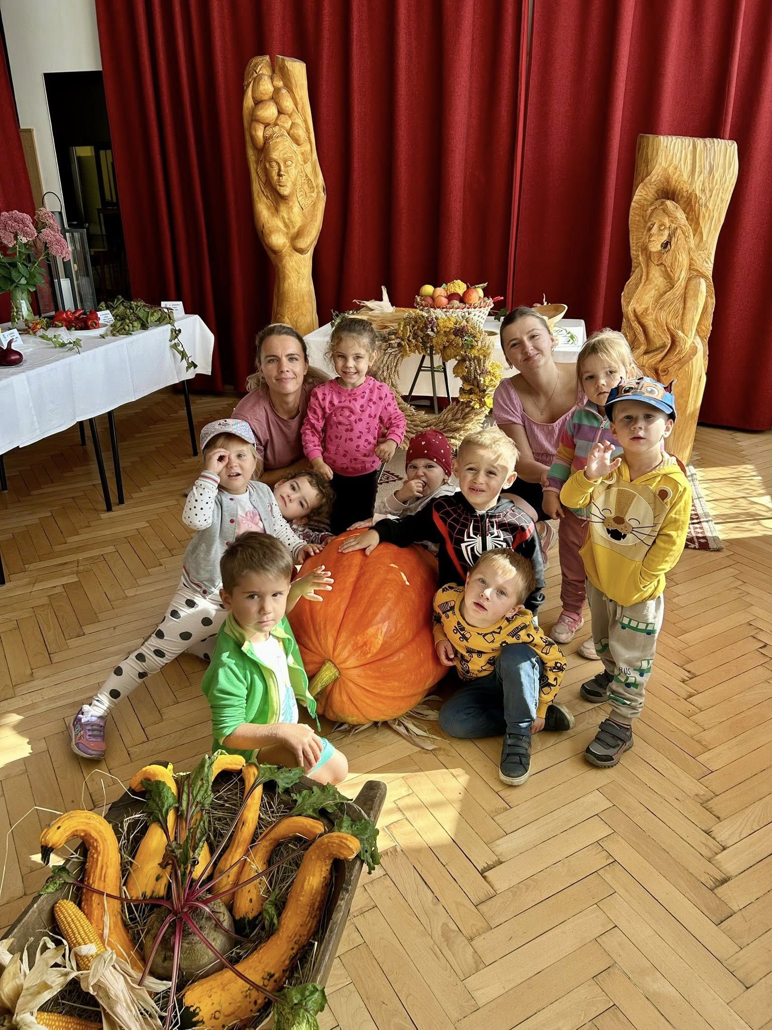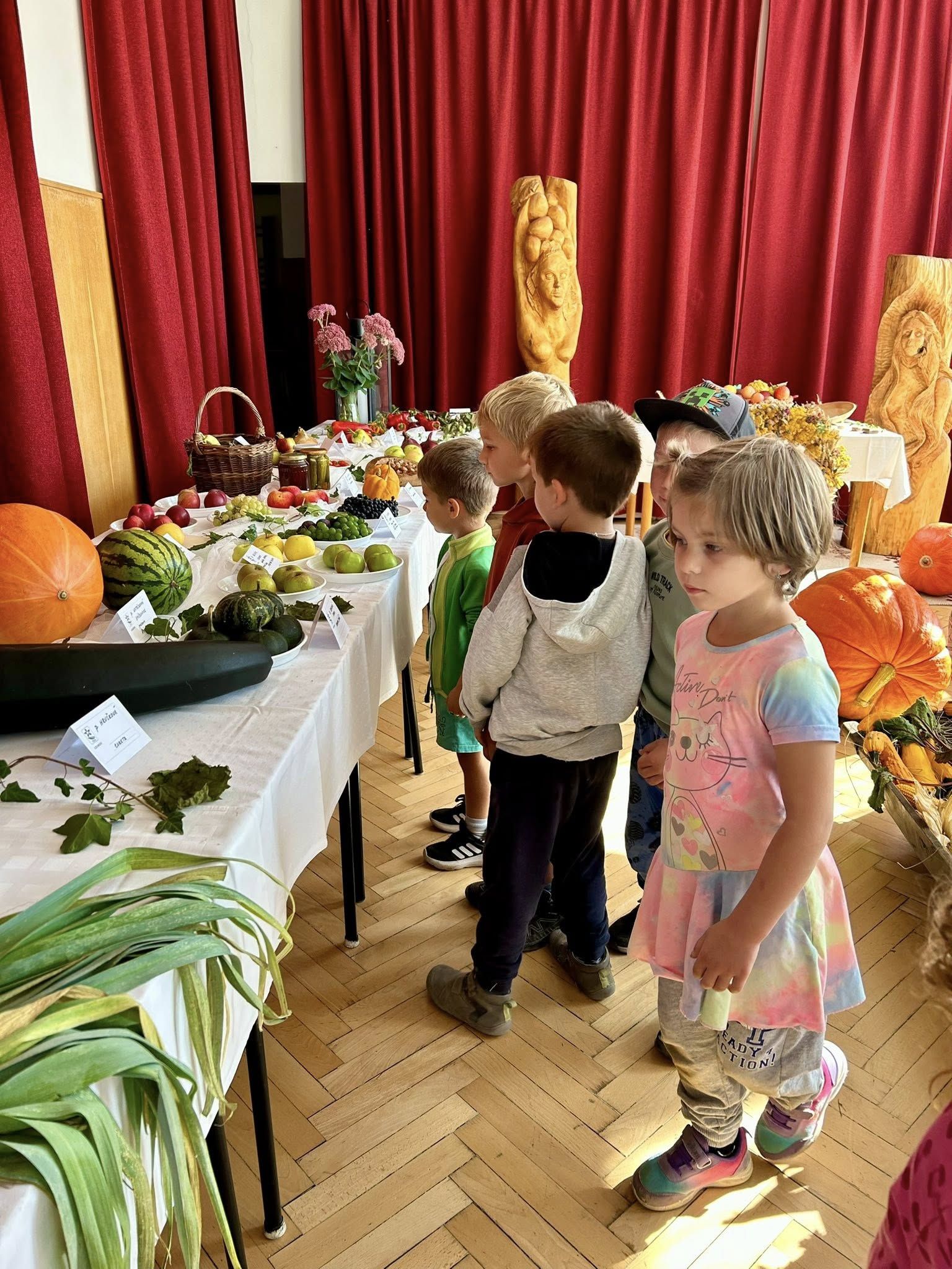 V pondělí jsme se šli podívat na výstavu společně. Viděli jsme spoustu zeleniny a ovoce, ale také zvířatka. Nejvíce děti zaujaly velké dýně a ovoce, které pro nás není tak známé.