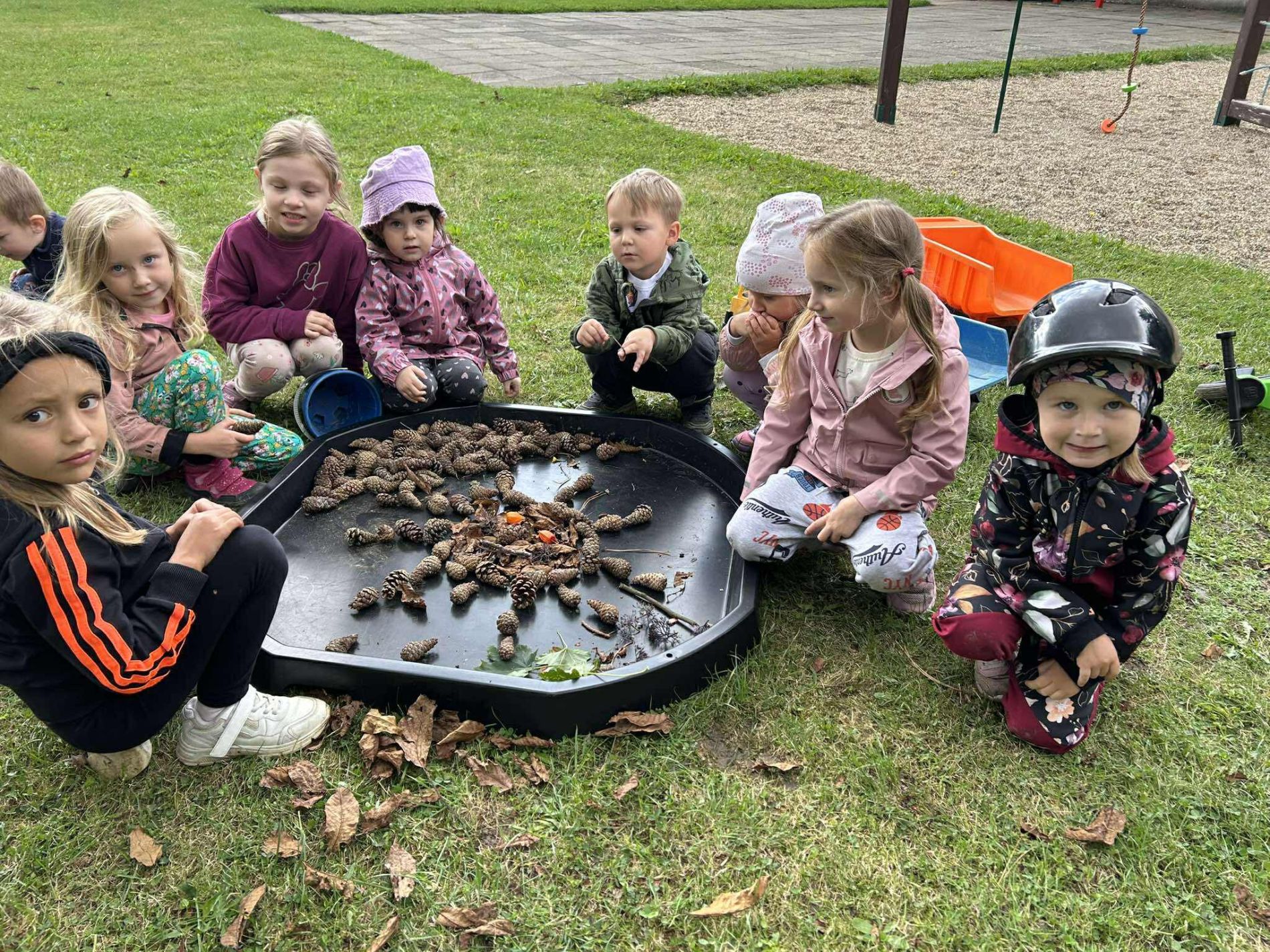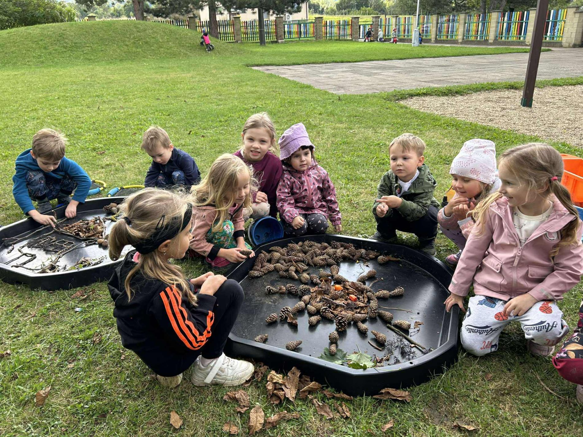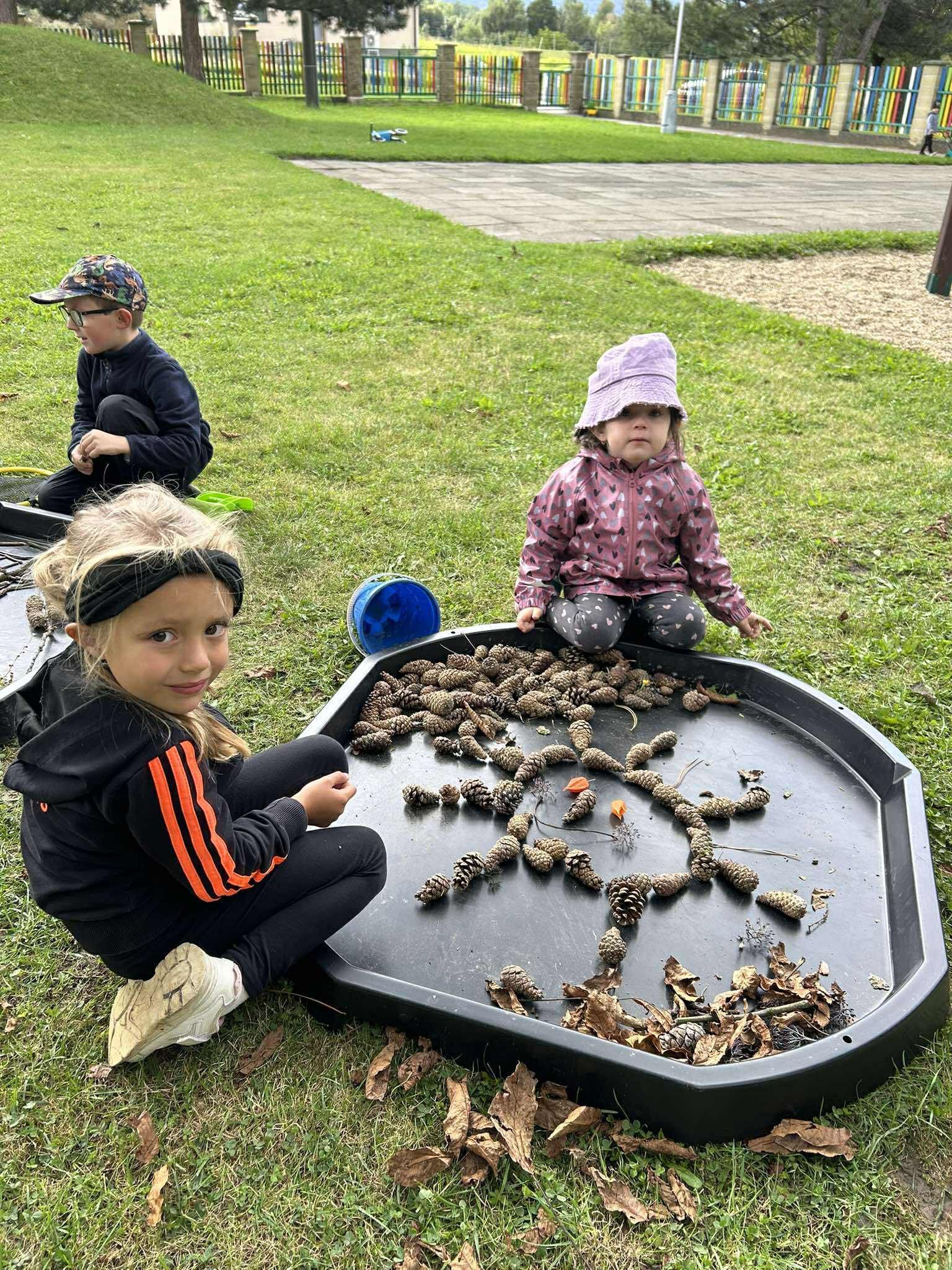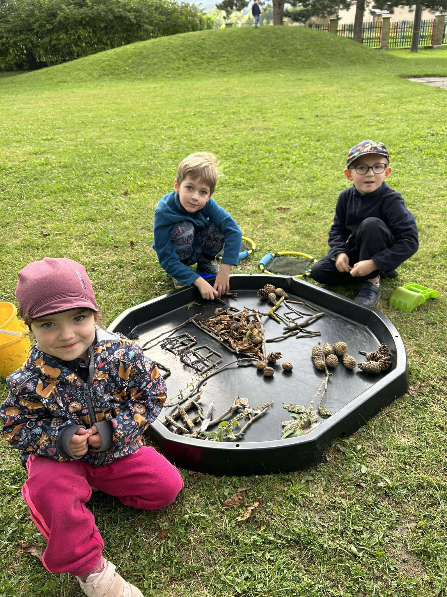 Dnes jsme se skřítkem Školkáčkem prozkoumávali naši zahrádku. Nacházeli jsme přírodniny různého tvaru, barvy a velikosti.